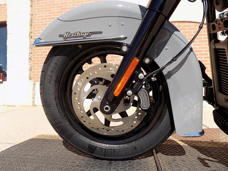 Designed for both style and performance, the Heritage Classic sports a timeless silhouette that pays homage to its roots with a touch of contemporary flair. The dark billiard gray exterior is both bold and sophisticated, capturing attention wherever you ride. The sturdy build of the motorcycle ensures durability and stability, making it perfect for long rides and city cruises alike.