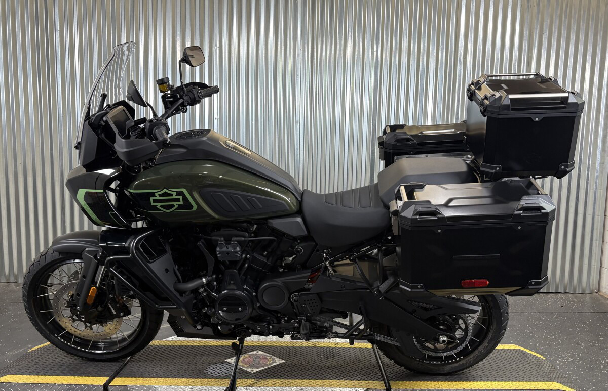 The 2026 Pan America 1250 Limited steps up with new SW-MOTECH aluminum luggage, fresh paint and graphics, and refined finishes on the Revolution Max 1250 motor for a sharper, classic look. Standard tubeless laced wheels, Adaptive Ride Height, and a Screamin’ Eagle Quickshifter bring confidence and control when the ground gets unpredictable, while factory-installed guarding and auxiliary lighting make it a true turn-key adventure machine. It’s fully equipped, straight from the factory, and itching to get dirty.