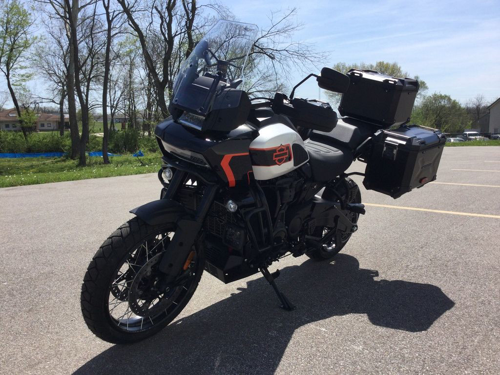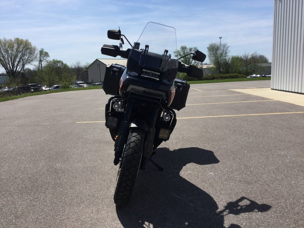 The liquid-cooled Revolution Max 1250 cranks out 150 hp with that notoriously instant torque. New finned engine covers tighten its stance for a more compact-looking, muscle -bike vibe, while a blacked-out powertrain finish gives it the high-performance edge Pan America riders asked for. Built to run hard for long days, it stays cool and composed on any surface, and looks like a work of art while it doe s it.