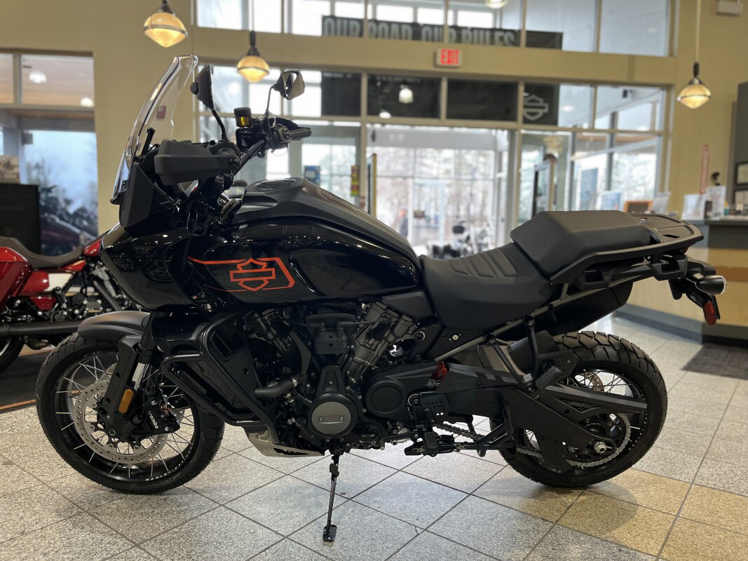 From city slab to backcountry rock, the Pan America 1250 Special delivers 150 hp of adaptable power at the flick of the throttle, in a package that weighs less than 570 lbs. With Adaptive Ride Height, Rider Safety Enhancements, and a 173 mm touchscreen display all standard, it’s packed with tech and built to take you wherever you want to go, even if the road doesn’t.