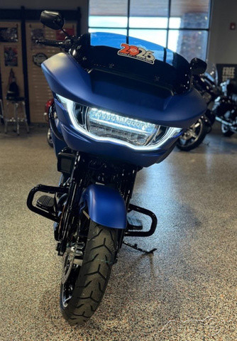 2026 Harley-Davidson® Road Glide®Nowhere Never Looked So GoodWith a liquid-cooled Milwaukee-Eight® 117 motor, selectable ride modes, ride-tuned suspension and the Skyline™ OS 12.3” (312 mm) display guiding the way, the 2026 Road Glide turns every nowhere into exactly where you want to be. Because freedom isn’t where you’re going, it’s how you move.Features may include:Every Angle Aimed At What’s AheadSubhead: From its iconic Sharknose fairing to contrast-cut wheels and full LED signature lighting, the 2026 Road Glide is built to turn heads while taking you further.Redesigned Sharknose FairingThe iconic Sharknose fairing on the 2026 Road Glide is better than ever, designed with computational fluid dynamics (CFD) to increase aerodynamic efficiency and reduce helmet buffeting. And it looks cool as hell.LED Signature LightingLED lighting front and back fits the lines of the bike without adding clutter or distractionContrast-Cut WheelsWith an 18" rear (457 mm) and 19" front (483 mm), these lightweight cast-aluminum wheels come in a distinctive gloss black finish with machined highlights and are purpose-built to make the 2026 Road Glide more maneuverable than everPresence That Pulls Harder And Goes FurtherFeaturing H-D's Milwaukee-Eight 117 motor, a ride-tuned suspension for longer days, and a premium 200-watt sound system, the 2026 Road Glide delivers presence as much as it does power.Selectable Ride Modes Ready for Any RoadThree pre-programmed ride modes adjust throttle mapping, Traction Control, ABS, and more to change the feel of the bike instantly. You can also create a custom mode to match your riding style and help you squeeze every ounce out of every ride.