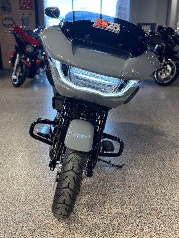 2026 Harley-Davidson® Road Glide®Nowhere Never Looked So GoodWith a liquid-cooled Milwaukee-Eight® 117 motor, selectable ride modes, ride-tuned suspension and the Skyline™ OS 12.3” (312 mm) display guiding the way, the 2026 Road Glide turns every nowhere into exactly where you want to be. Because freedom isn’t where you’re going, it’s how you move.Features may include:Every Angle Aimed At What’s AheadSubhead: From its iconic Sharknose fairing to contrast-cut wheels and full LED signature lighting, the 2026 Road Glide is built to turn heads while taking you further.Redesigned Sharknose FairingThe iconic Sharknose fairing on the 2026 Road Glide is better than ever, designed with computational fluid dynamics (CFD) to increase aerodynamic efficiency and reduce helmet buffeting. And it looks cool as hell.LED Signature LightingLED lighting front and back fits the lines of the bike without adding clutter or distractionContrast-Cut WheelsWith an 18" rear (457 mm) and 19" front (483 mm), these lightweight cast-aluminum wheels come in a distinctive gloss black finish with machined highlights and are purpose-built to make the 2026 Road Glide more maneuverable than everPresence That Pulls Harder And Goes FurtherFeaturing H-D's Milwaukee-Eight 117 motor, a ride-tuned suspension for longer days, and a premium 200-watt sound system, the 2026 Road Glide delivers presence as much as it does power.Selectable Ride Modes Ready for Any RoadThree pre-programmed ride modes adjust throttle mapping, Traction Control, ABS, and more to change the feel of the bike instantly. You can also create a custom mode to match your riding style and help you squeeze every ounce out of every ride.