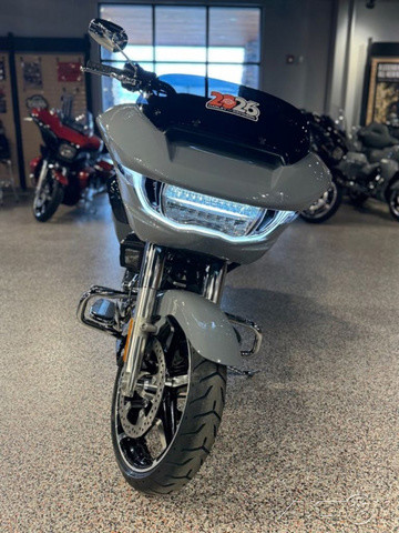 2026 Harley-Davidson® Road Glide®Nowhere Never Looked So GoodWith a liquid-cooled Milwaukee-Eight® 117 motor, selectable ride modes, ride-tuned suspension and the Skyline™ OS 12.3” (312 mm) display guiding the way, the 2026 Road Glide turns every nowhere into exactly where you want to be. Because freedom isn’t where you’re going, it’s how you move.Features may include:Every Angle Aimed At What’s AheadSubhead: From its iconic Sharknose fairing to contrast-cut wheels and full LED signature lighting, the 2026 Road Glide is built to turn heads while taking you further.Redesigned Sharknose FairingThe iconic Sharknose fairing on the 2026 Road Glide is better than ever, designed with computational fluid dynamics (CFD) to increase aerodynamic efficiency and reduce helmet buffeting. And it looks cool as hell.LED Signature LightingLED lighting front and back fits the lines of the bike without adding clutter or distractionContrast-Cut WheelsWith an 18" rear (457 mm) and 19" front (483 mm), these lightweight cast-aluminum wheels come in a distinctive gloss black finish with machined highlights and are purpose-built to make the 2026 Road Glide more maneuverable than everPresence That Pulls Harder And Goes FurtherFeaturing H-D's Milwaukee-Eight 117 motor, a ride-tuned suspension for longer days, and a premium 200-watt sound system, the 2026 Road Glide delivers presence as much as it does power.Selectable Ride Modes Ready for Any RoadThree pre-programmed ride modes adjust throttle mapping, Traction Control, ABS, and more to change the feel of the bike instantly. You can also create a custom mode to match your riding style and help you squeeze every ounce out of every ride.