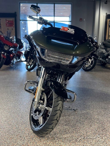 2026 Harley-Davidson® Road Glide®Nowhere Never Looked So GoodWith a liquid-cooled Milwaukee-Eight® 117 motor, selectable ride modes, ride-tuned suspension and the Skyline™ OS 12.3” (312 mm) display guiding the way, the 2026 Road Glide turns every nowhere into exactly where you want to be. Because freedom isn’t where you’re going, it’s how you move.Features may include:Every Angle Aimed At What’s AheadSubhead: From its iconic Sharknose fairing to contrast-cut wheels and full LED signature lighting, the 2026 Road Glide is built to turn heads while taking you further.Redesigned Sharknose FairingThe iconic Sharknose fairing on the 2026 Road Glide is better than ever, designed with computational fluid dynamics (CFD) to increase aerodynamic efficiency and reduce helmet buffeting. And it looks cool as hell.LED Signature LightingLED lighting front and back fits the lines of the bike without adding clutter or distractionContrast-Cut WheelsWith an 18" rear (457 mm) and 19" front (483 mm), these lightweight cast-aluminum wheels come in a distinctive gloss black finish with machined highlights and are purpose-built to make the 2026 Road Glide more maneuverable than everPresence That Pulls Harder And Goes FurtherFeaturing H-D's Milwaukee-Eight 117 motor, a ride-tuned suspension for longer days, and a premium 200-watt sound system, the 2026 Road Glide delivers presence as much as it does power.Selectable Ride Modes Ready for Any RoadThree pre-programmed ride modes adjust throttle mapping, Traction Control, ABS, and more to change the feel of the bike instantly. You can also create a custom mode to match your riding style and help you squeeze every ounce out of every ride.