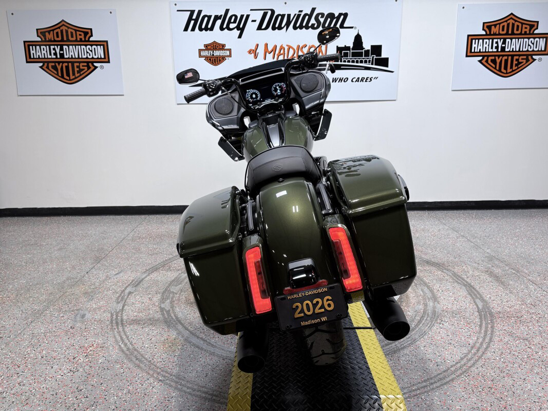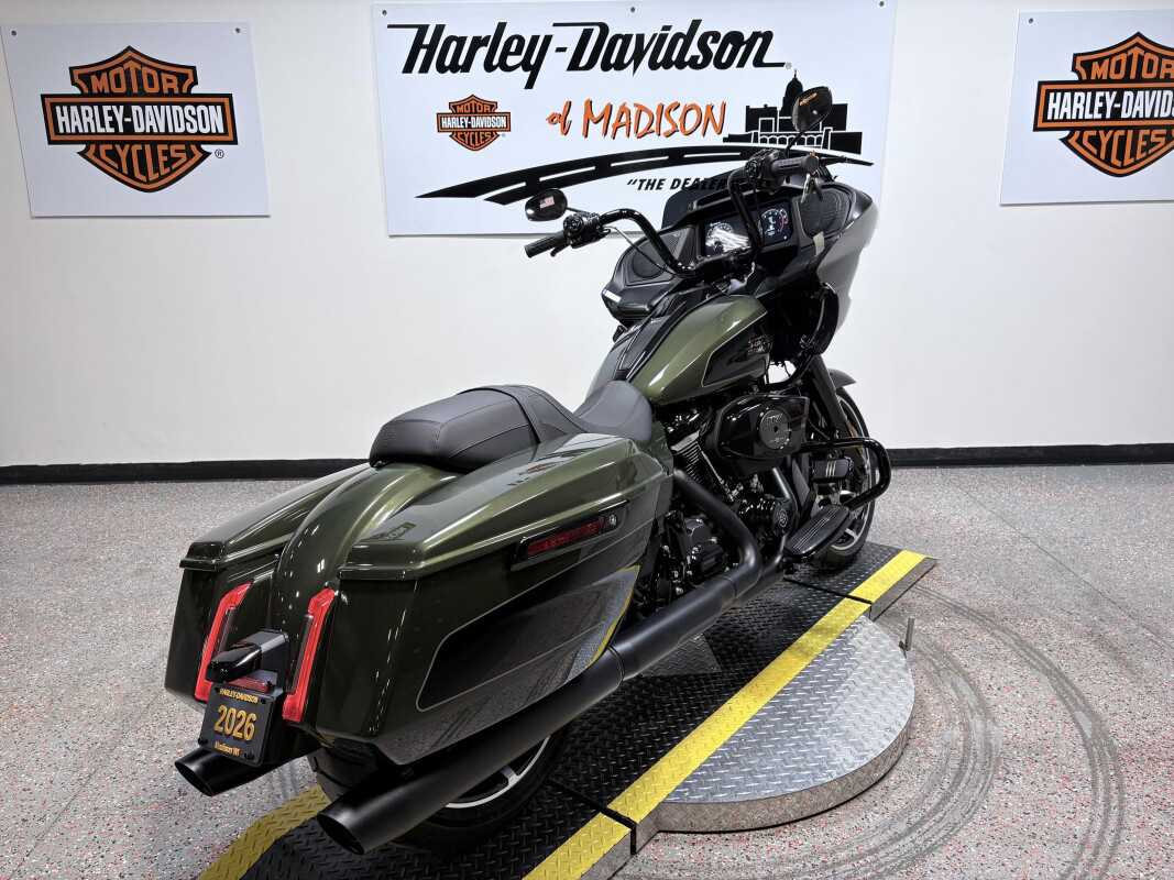 The 2026 Road Glide is a premier touring motorcycle that blends long-distance capability with bold style and advanced rider-focused tech. Powered by a liquid-cooled Milwaukee-Eight 117 V-Twin engine with around 105 hp and 130 ft-lb of torque, the Road Glide delivers smooth, confident power for highway cruising and spirited back-road adventures. Its signature aerodynamic Sharknose fairing is engineered for reduced wind buffeting and enhanced stability, while the ride-tuned suspension and asymmetric emulsion shocks keep the ride composed whether you’re loaded for two-up touring or solo. A large 12.3-inch Skyline OS touchscreen display with selectable ride modes, navigation, Bluetooth connectivity, and premium audio brings modern connectivity and customization to every journey. With refined ergonomics, LED lighting, standard rider safety enhancements, and excellent fuel economy, the 2026 Road Glide stands out as a top choice for riders seeking a Harley-Davidson touring motorcycle that excels in comfort, performance, and technology.