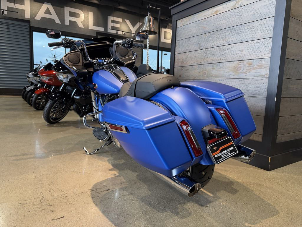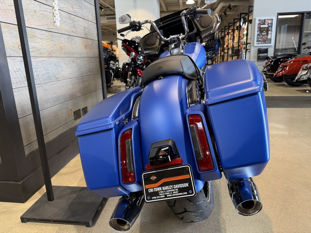 The new cast-aluminum wheels give the Road Glide Limited a sharper, more modern stance, with a split-spoke design that starts with 10 spokes that split into 20. Streamliner Collection components flow seamlessly across the bike, while saddlebag and engine guards complete the look.