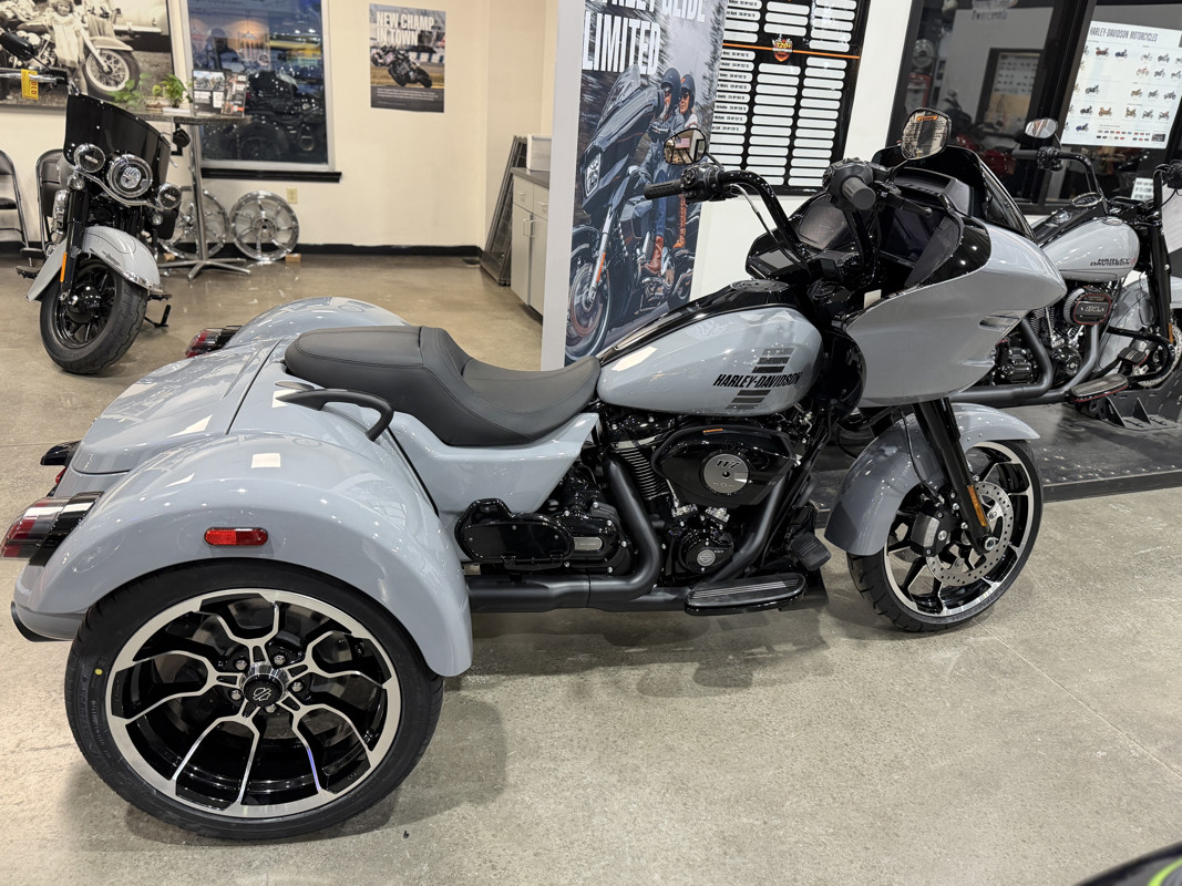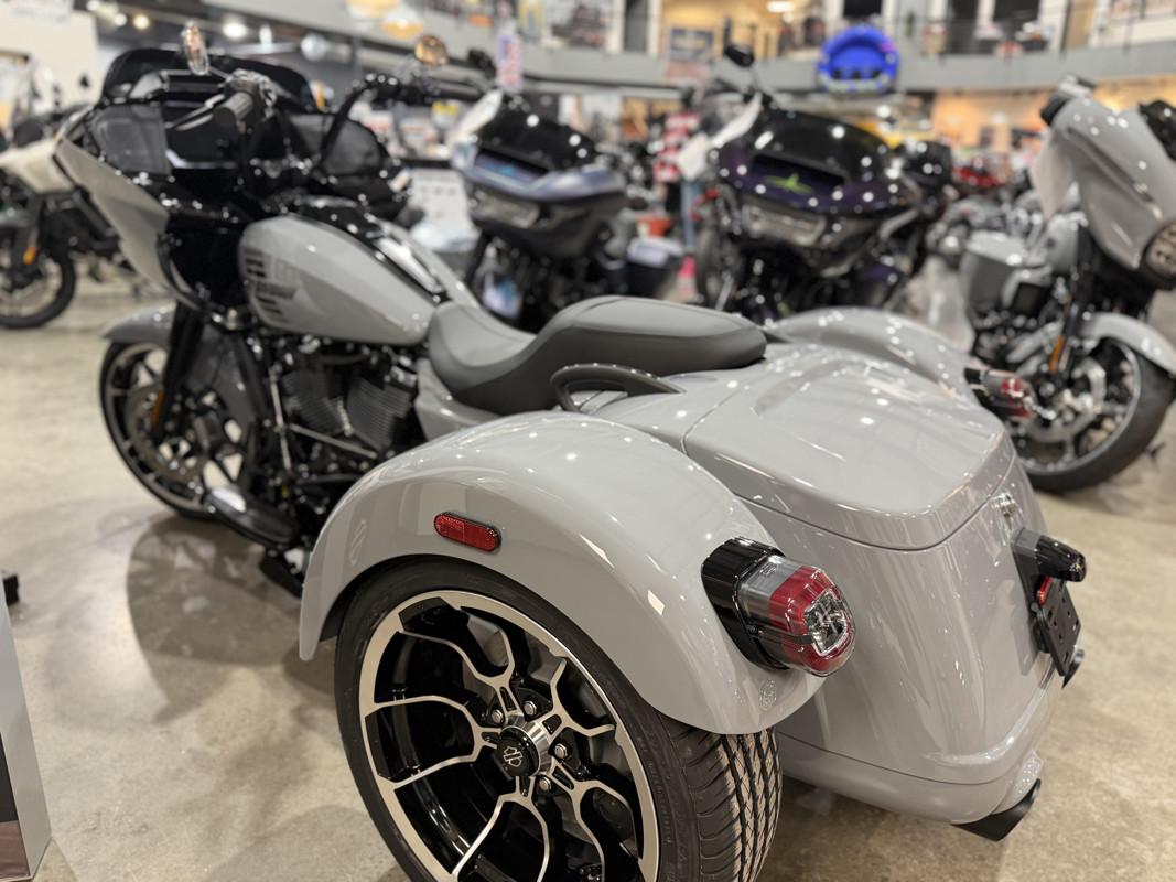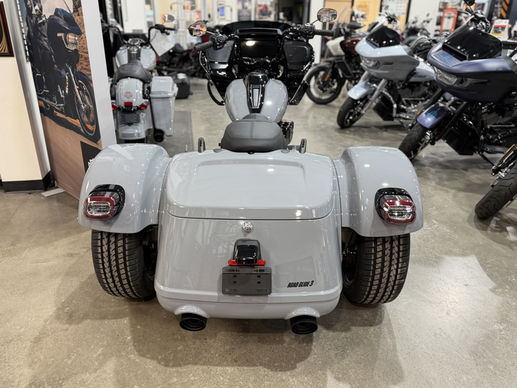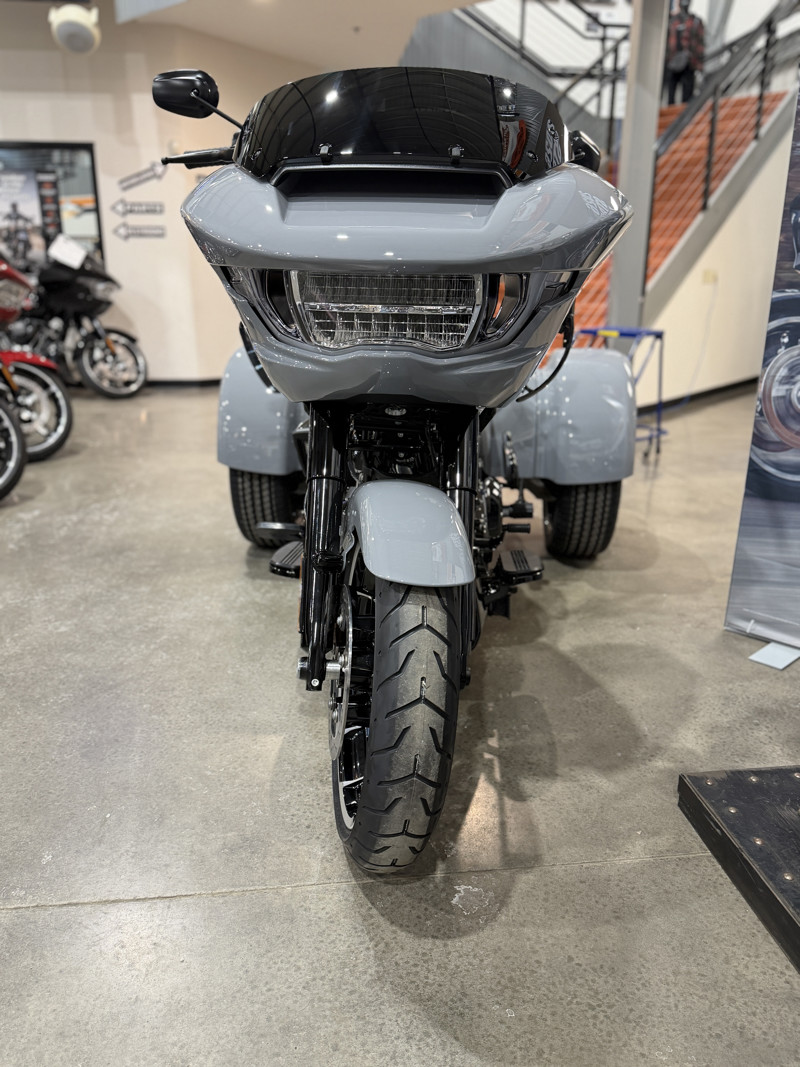 The 2026 Harley-Davidson Road Glide 3 rewrites what a trike can be. It's leaner, it's meaner, and it's built for all get out. A redesigned Sharknose fairing cuts a sharper profile over a planted, aggressive stance. A Milwaukee-Eight® VVT 117 motor is at the center of its hot-rod heart, and its brand new, completely redesigned rear suspension does two things: grip and go. The 12.3" TFT with Skyline™ OS, along with LED lighting, Rider Safety Enhancements, and four selectable ride modes keep this one ready for street and strip.