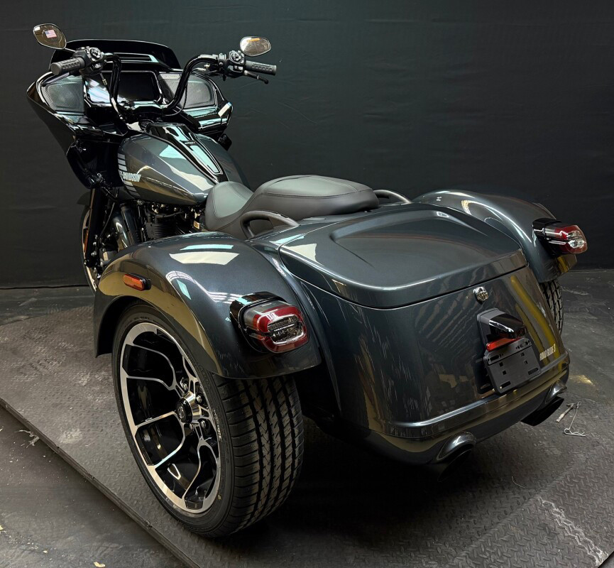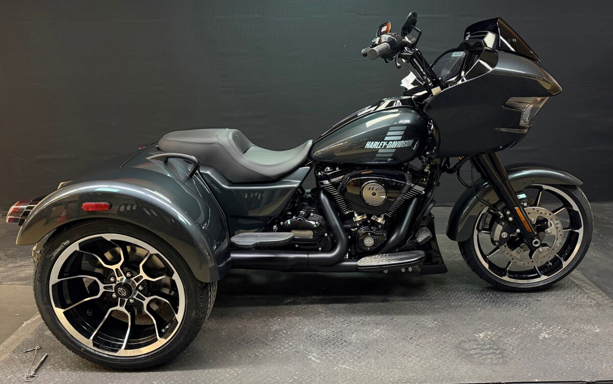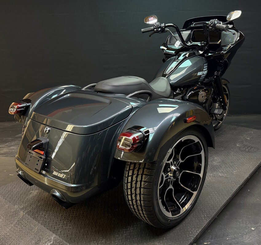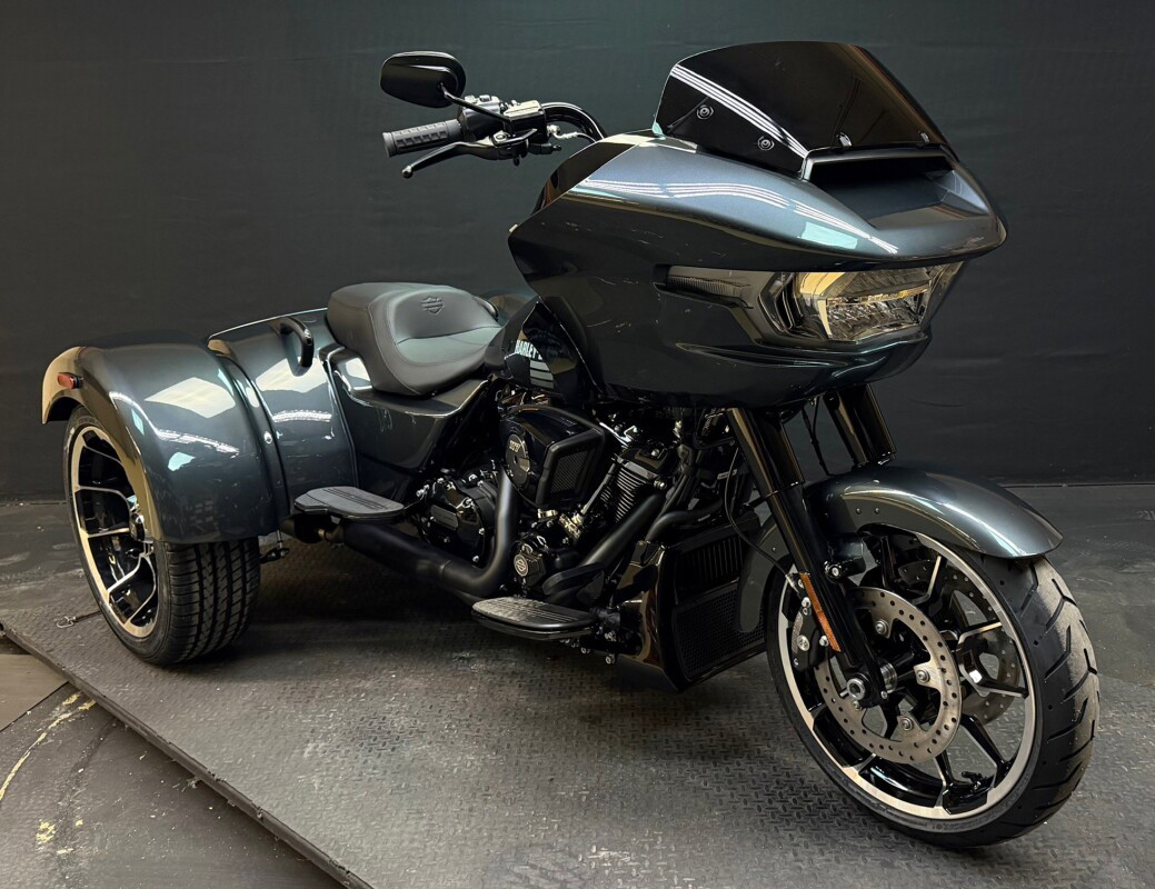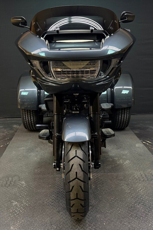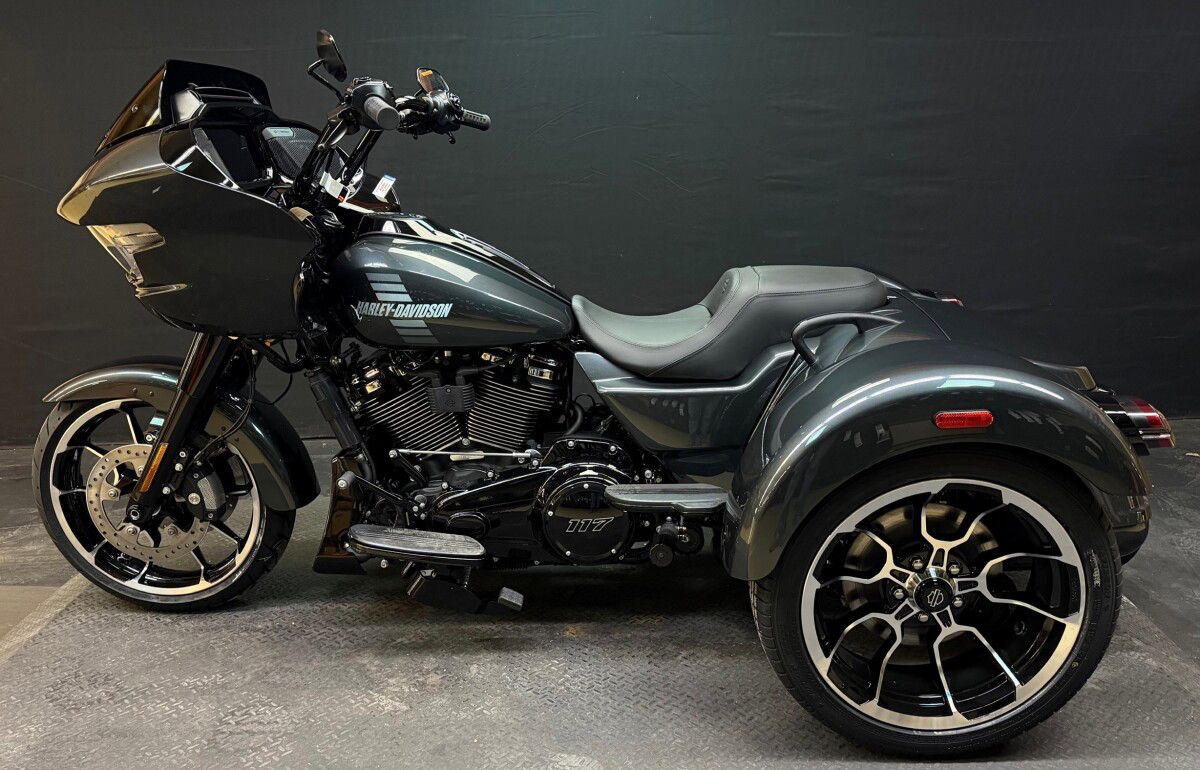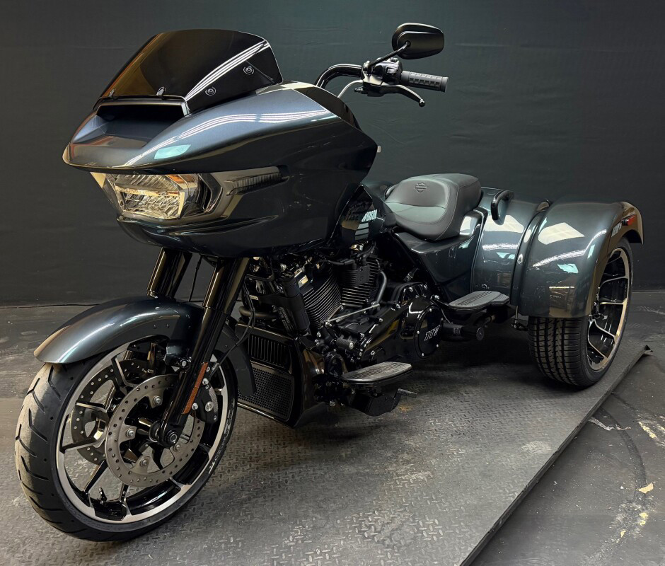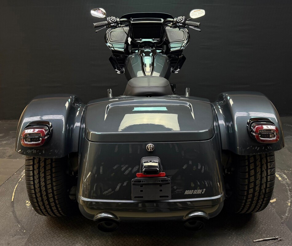 The new 2026 Harley-Davidson Road Glide 3 rewrites what a trike can be. It's leaner, it's meaner, and it's built for all get out. A redesigned Sharknose fairing cuts a sharper profile over a planted, aggressive stance. A Milwaukee-Eight VVT 117 motor is at the centre of its hot-rod heart, and its brand new, completely redesigned rear suspension does two things: grip and go. The 12.3 TFT with Skyline OS, along with LED lighting, Rider Safety Enhancements, and four selectable ride modes keep this one ready for street and strip.