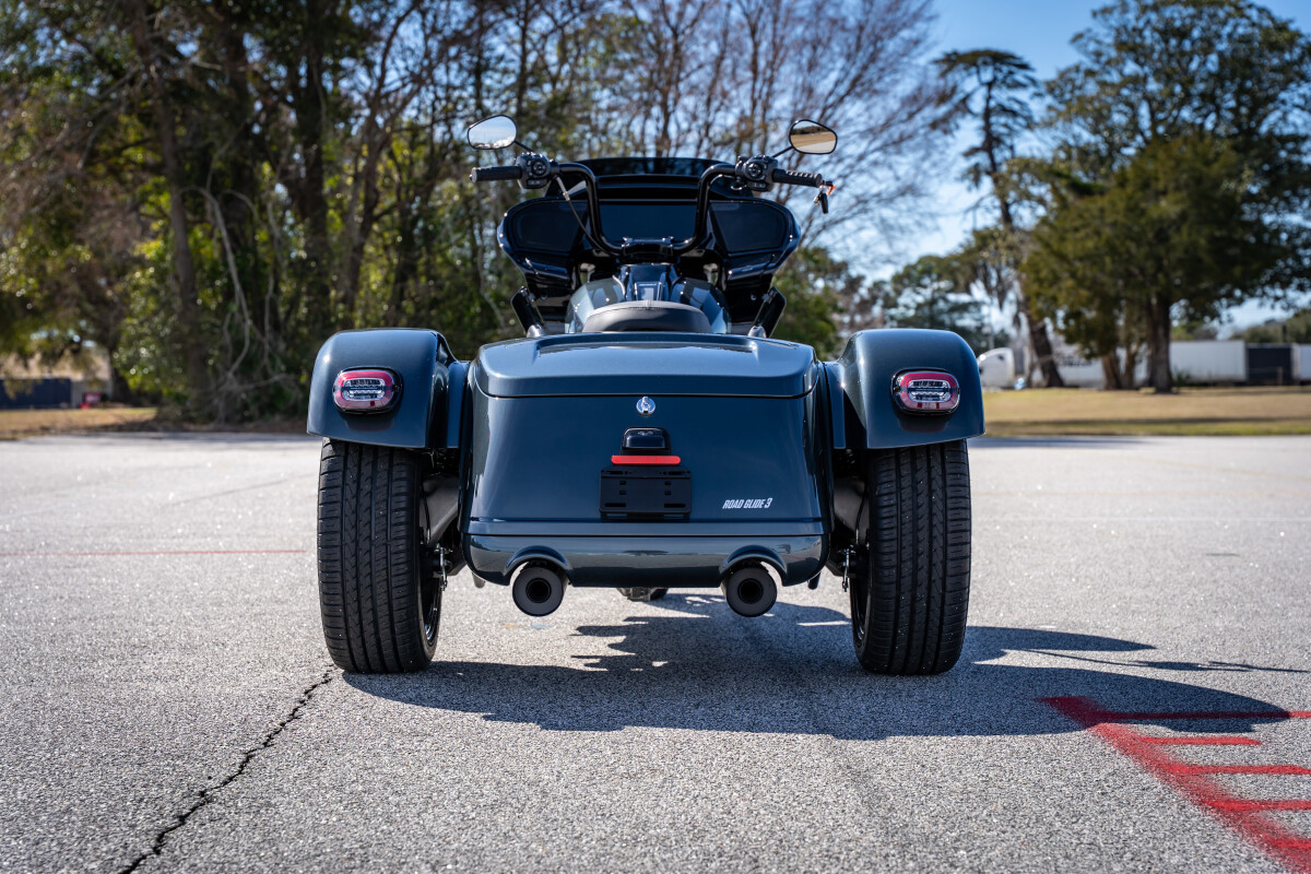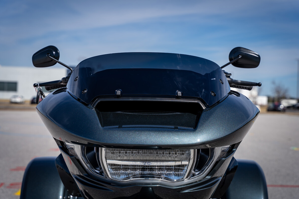 The new 2026 Harley-Davidson Road Glide 3 rewrites what a trike can be. It's leaner, it's meaner, and it's built for all get out. A redesigned Sharknose fairing cuts a sharper profile over a planted, aggressive stance. A Milwaukee-Eight VVT 117 motor is at the centre of its hot-rod heart, and its brand new, completely redesigned rear suspension does two things: grip and go. The 12.3 TFT with Skyline OS, along with LED lighting, Rider Safety Enhancements, and four selectable ride modes keep this one ready for street and strip.