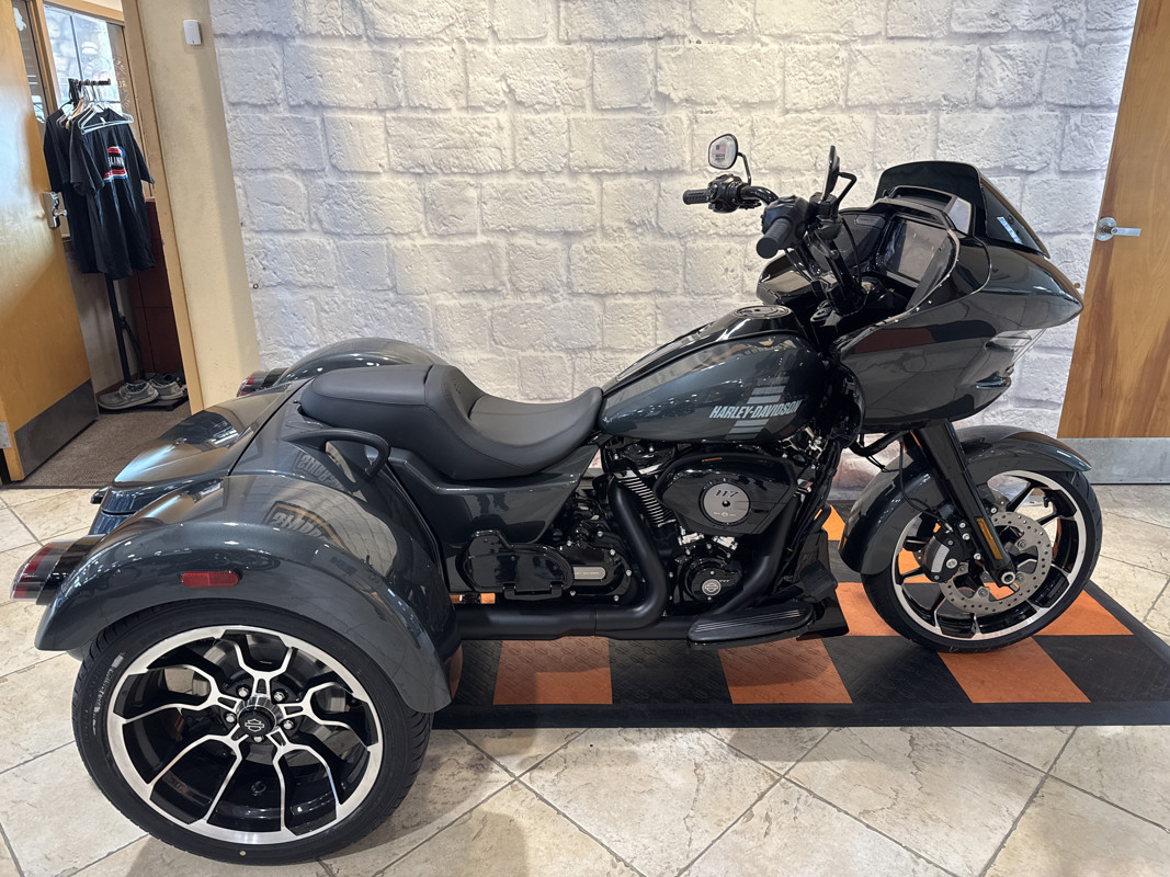 The 2026 Harley-Davidson Road Glide 3 rewrites what a trike can be. It's leaner, it's meaner, and it's built for all get out. A redesigned Sharknose fairing cuts a sharper profile over a planted, aggressive stance. A Milwaukee-Eight® VVT 117 motor is at the center of its hot-rod heart, and its brand new, completely redesigned rear suspension does two things: grip and go. The 12.3" TFT with Skyline™ OS, along with LED lighting, Rider Safety Enhancements, and four selectable ride modes keep this one ready for street and strip.