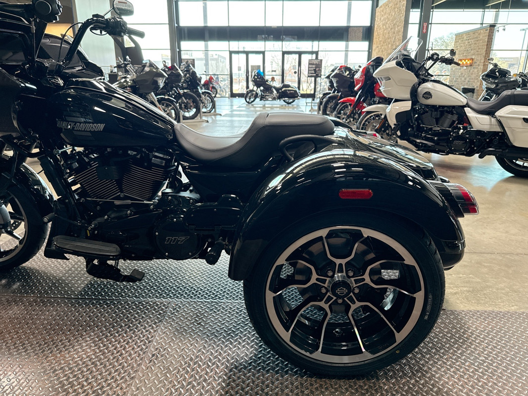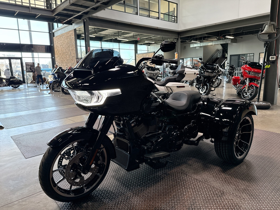 Finished in a stunning Vivid Black exterior, the Road Glide 3 demands attention with its striking appearance. The color enhances the trike's bold curves and refined design, embodying the essence of Harley-Davidson's premium craftsmanship and storied legacy.