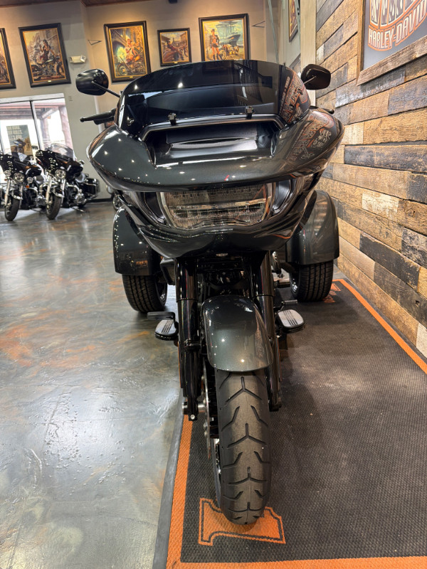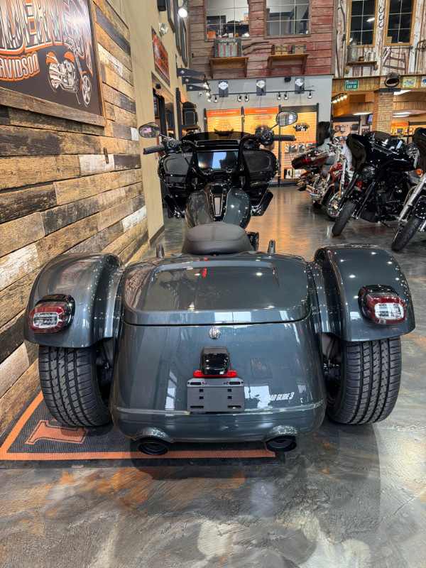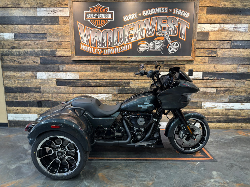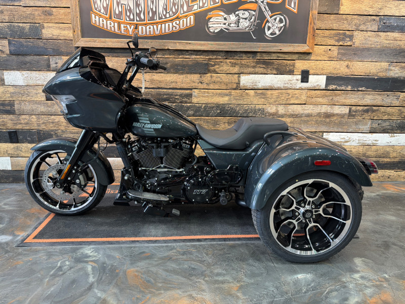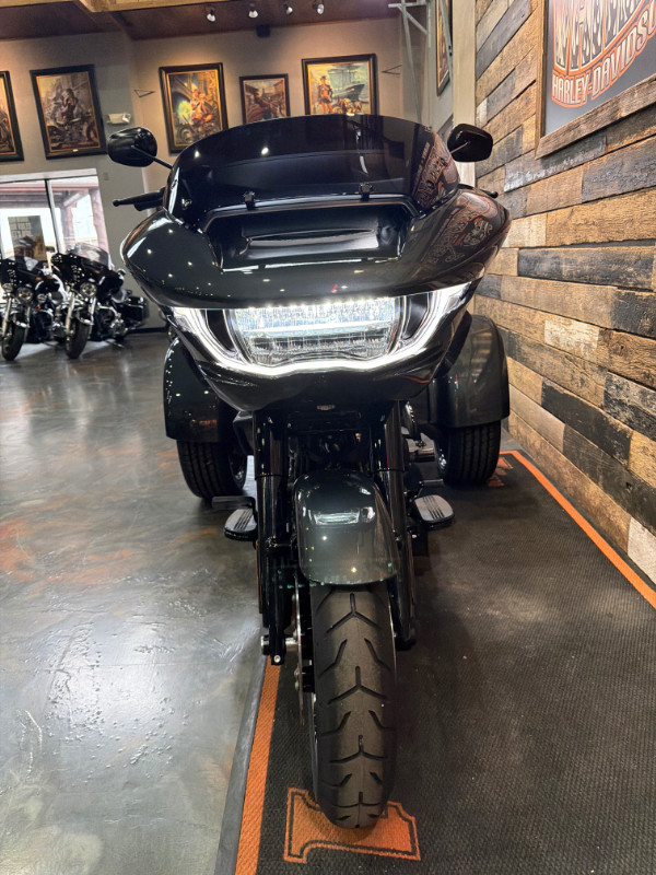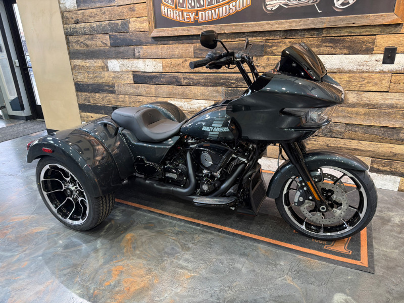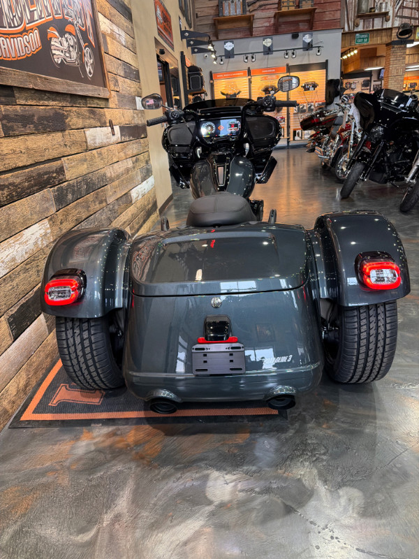 The new 2026 Harley-Davidson Road Glide 3 rewrites what a trike can be. It's leaner, it's meaner, and it's built for all get out. A redesigned Sharknose fairing cuts a sharper profile over a planted, aggressive stance. A Milwaukee-Eight® VVT 117 motor is at the center of its hot-rod heart, and its brand new, completely redesigned rear suspension does two things: grip and go. The 12.3" TFT with Skyline™ OS, along with LED lighting, Rider Safety Enhancements, and four selectable ride modes keep this one ready for street and strip.