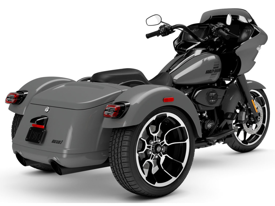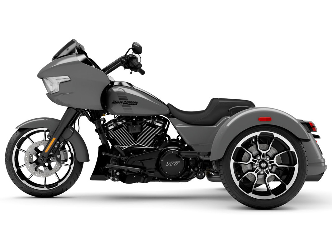 The 2026 Harley-Davidson Road Glide 3 rewrites what a trike can be. It's leaner, it's meaner, and it's built for all get out. A redesigned Sharknose fairing cuts a sharper profile over a planted, aggressive stance. A Milwaukee-Eight® VVT 117 motor is at the center of its hot-rod heart, and its brand new, completely redesigned rear suspension does two things: grip and go. The 12.3" TFT with Skyline™ OS, along with LED lighting, Rider Safety Enhancements, and four selectable ride modes keep this one ready for street and strip.