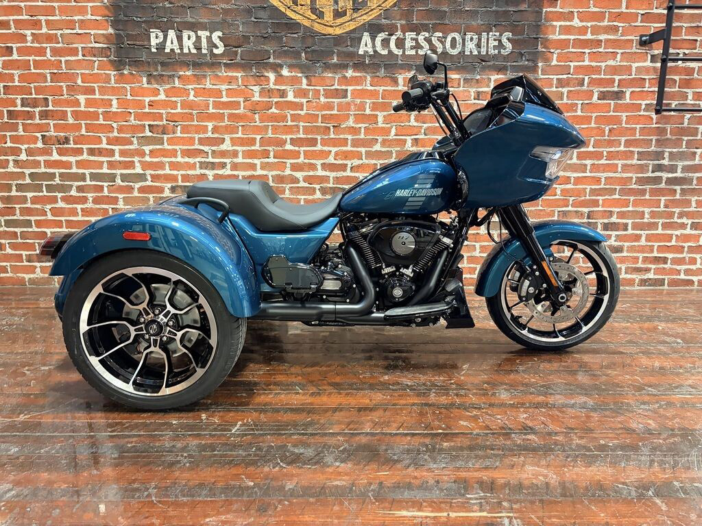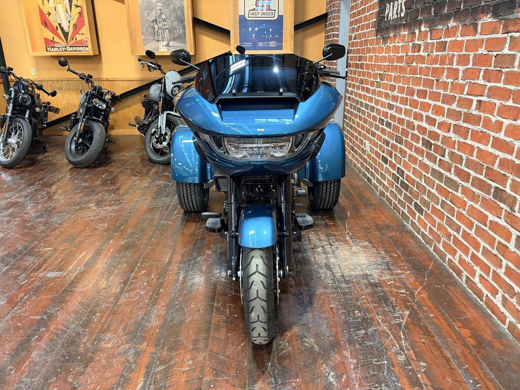 The new 2026 Harley-Davidson Road Glide 3 rewrites what a trike can be. It's leaner, it's meaner, and it's built for all get out. A redesigned Sharknose fairing cuts a sharper profile over a planted, aggressive stance. A Milwaukee-Eight VVT 117 motor is at the centre of its hot-rod heart, and its brand new, completely redesigned rear suspension does two things: grip and go. The 12.3 TFT with Skyline OS, along with LED lighting, Rider Safety Enhancements, and four selectable ride modes keep this one ready for street and strip.