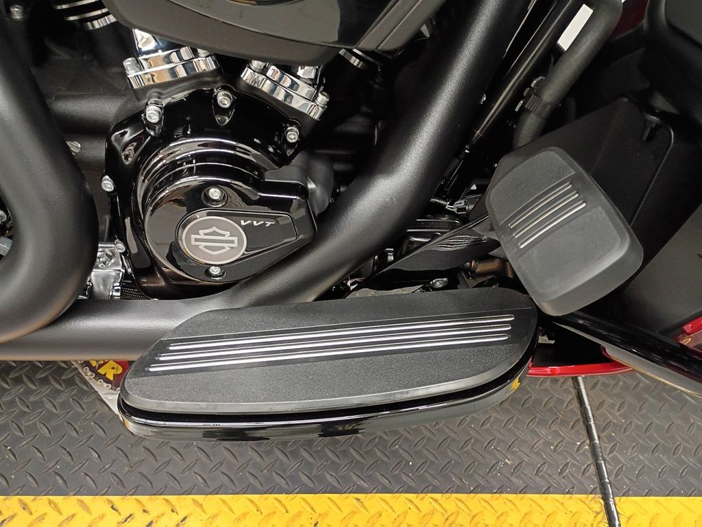 The most advanced touring motor Harley-Davidson has ever dropped into a standard factory production bike. With 106 hp (107 HP / 80kW @ 5020 rpm) and 131 ft-lb (175 Nm) of torque, it hits hard off the line whenever you want it to thanks to its Variable Valve Timing (VVT) . Liquid-cooled heads and a center-mounted radiator keep it running strong when the heat’s on, while Variable Valve Timing spreads the torque smoothly across the powerband.
