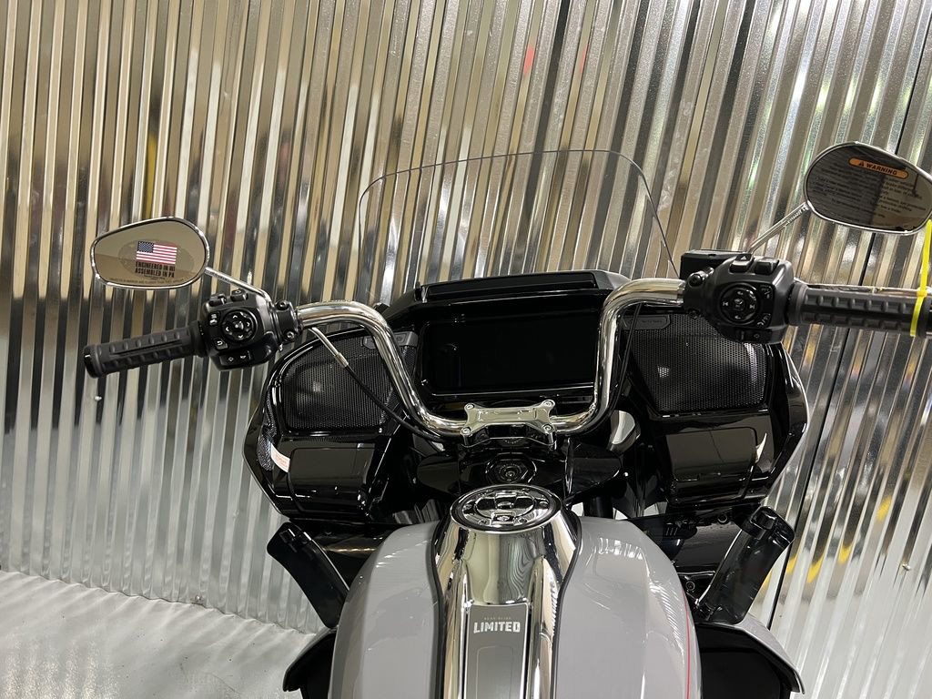 The new cast-aluminum wheels give the Road Glide Limited a sharper, more modern stance, with a split-spoke design that starts with 10 spokes that split into 20. Streamliner Collection components flow seamlessly across the bike, while saddlebag and engine guards complete the look.