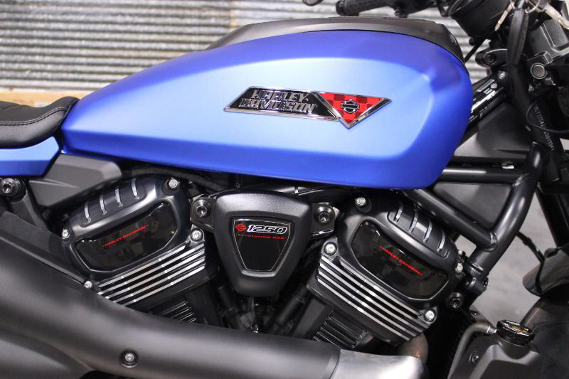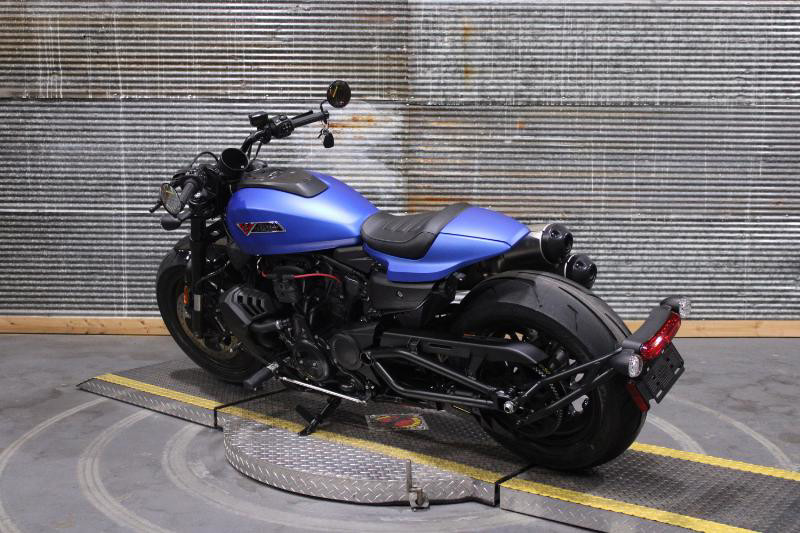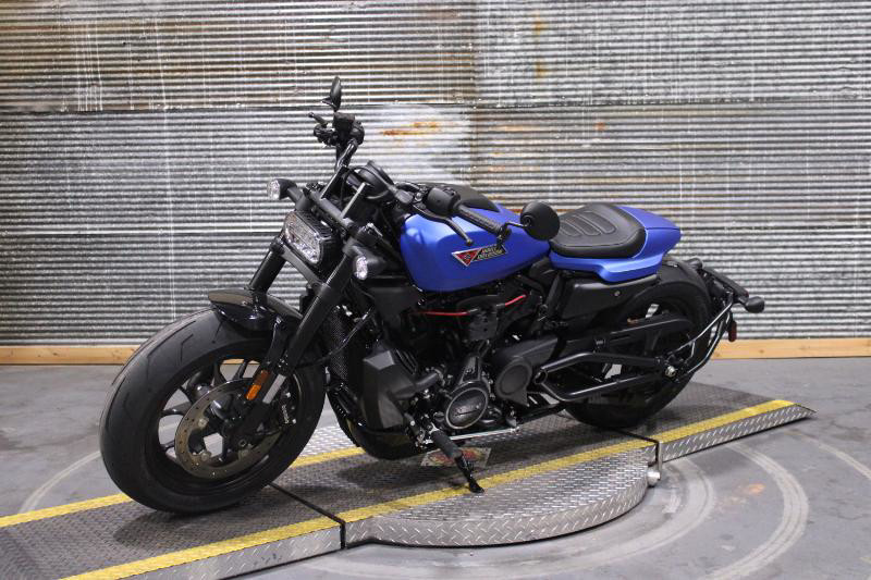 Dressed in an eye-catching Aurora Blue DNM, the SPORTSTER S combines classic Harley-Davidson styling with a modern twist. This vivid color not only stands out in the crowd but also complements the bike's sleek and muscular profile, accentuating its powerful aura.