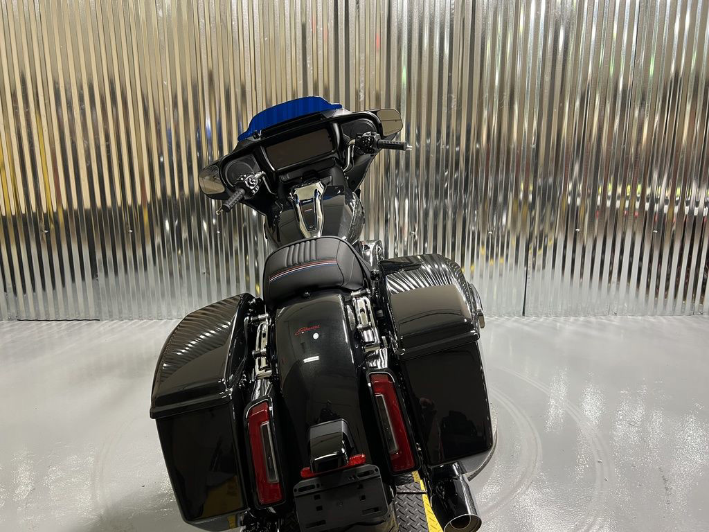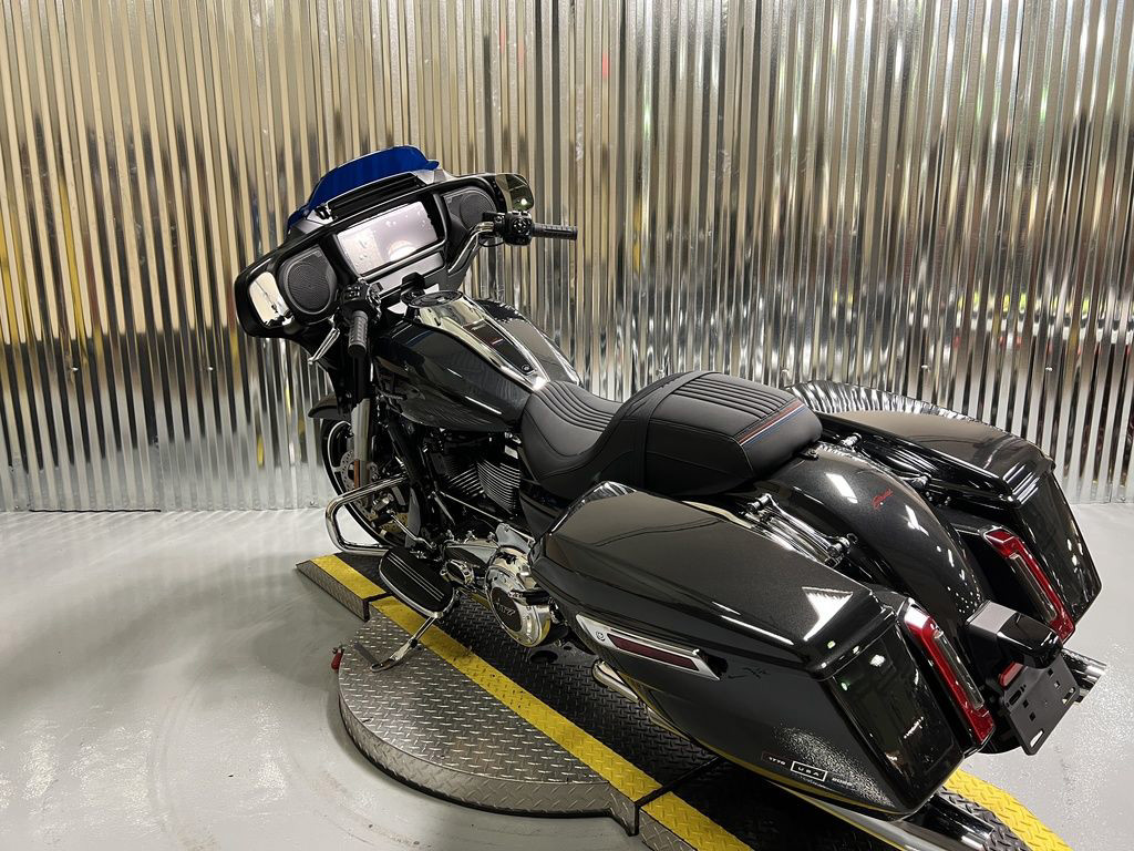 The Milwaukee-Eight 117 delivers 105 hp and 130 ft-lb. of torque, with liquid-cooled heads and a center-mounted radiator to keep both performance and rider comfortable when the temps climb, whether you’re crawling through traffic or chasing sky.