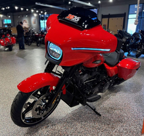 2026 Harley-Davidson® Street Glide®Make Every Ride the Long Way HomeFor those who’d rather roam than simply arrive, the 2026 Street Glide delivers the edge of the map on a silver platter. With striking new colorways, a liquid-cooled Milwaukee-Eight® 117 motor, ride-tuned rear suspension optimized for long haul comfort, and the 12.3” Skyline™ OS (312 mm) display keeping you headed in the right direction, every road is a reason to take the long way home.Features may include:The Next Generation of Batwing FairingShaped by computational fluid dynamics (CFD) to push clean air around the rider, the Street Glide’s iconic and newly redesigned iconic Batwing fairing cuts down helmet buffeting and makes hours in the saddle feel a whole lot shorter.All-LED Signature LightingDaytime Running Light headlamp, integrated turn signals, and a slim LED taillight give the Street Glide a modern glow that stands out in traffic and engineered to fit the bike’s clean lines.Milwaukee-Eight 117 That’s All GoThe Milwaukee-Eight 117 delivers 105 hp and 130 ft-lb. of torque, with liquid-cooled heads and a center-mounted radiator to keep both performance and rider comfortable when the temps climb, whether you’re crawling through traffic or chasing sky.High-Performance Touring IntakMore volume. More airflow. More reason to twist the throttle. The high-performance touring intake feeds the Milwaukee-Eight 117 exactly what it wants. More volume. More airflow. More reason to crack it open.Standard Rider Safety EnhancementsCornering ABS, Cornering Traction Control, and other tech step in when you need them, helping you hold your line even when the road doesn’t.Ride Loud with Premium SoundA 200-watt, 4-channel amp drives in-fairing speakers tuned to cut through wind and engine noise, so your soundtrack rides with you, loud and clear