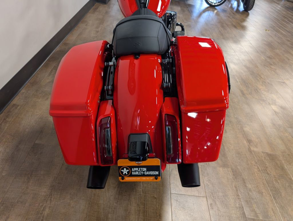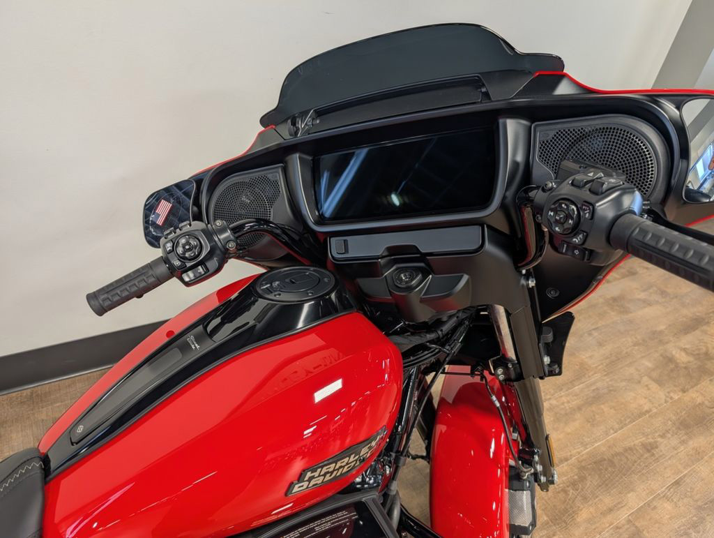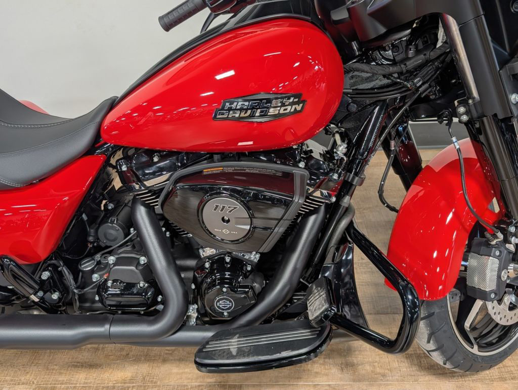 The Milwaukee-Eight 117 delivers 105 hp and 130 ft-lb. of torque, with liquid-cooled heads and a center-mounted radiator to keep both performance and rider comfortable when the temps climb, whether you’re crawling through traffic or chasing sky.