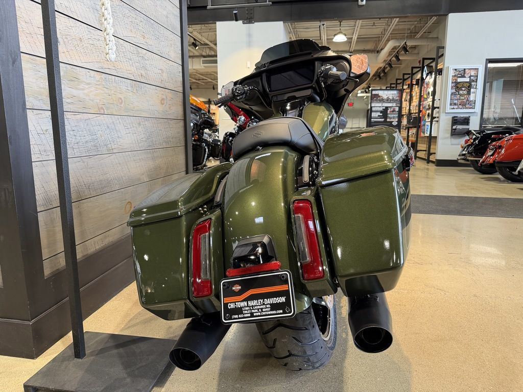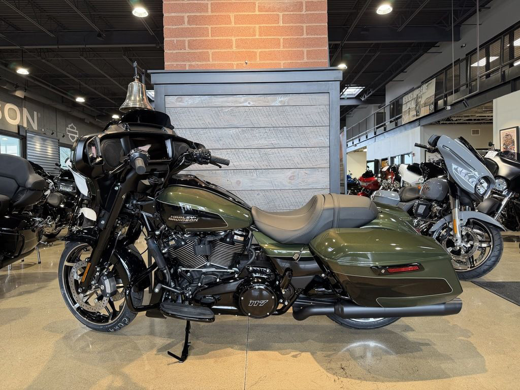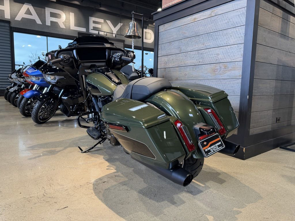 The Milwaukee-Eight 117 delivers 105 hp and 130 ft-lb. of torque, with liquid-cooled heads and a center-mounted radiator to keep both performance and rider comfortable when the temps climb, whether you’re crawling through traffic or chasing sky.