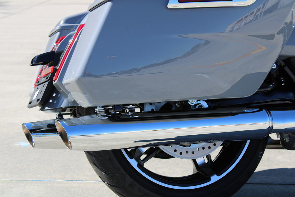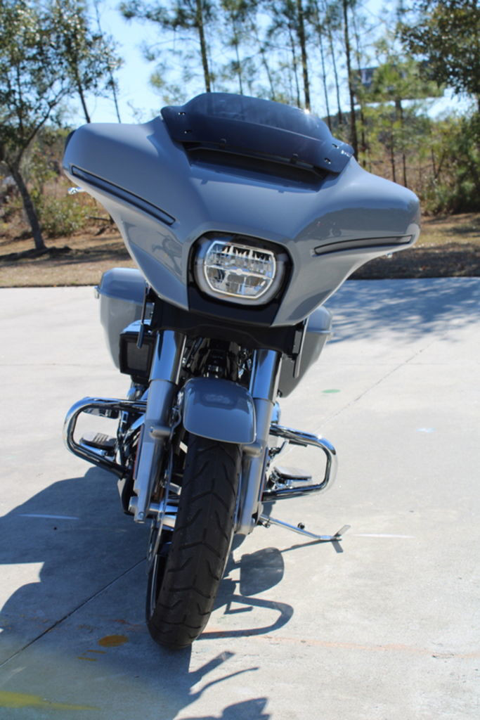 Daytime Running Light headlamp, integrated turn signals, and a slim LED taillight give the Street Glide a modern glow that stands out in traffic and engineered to fit the bike’s clean lines.