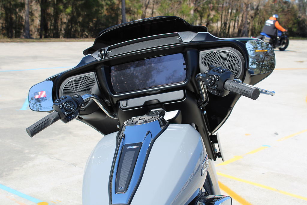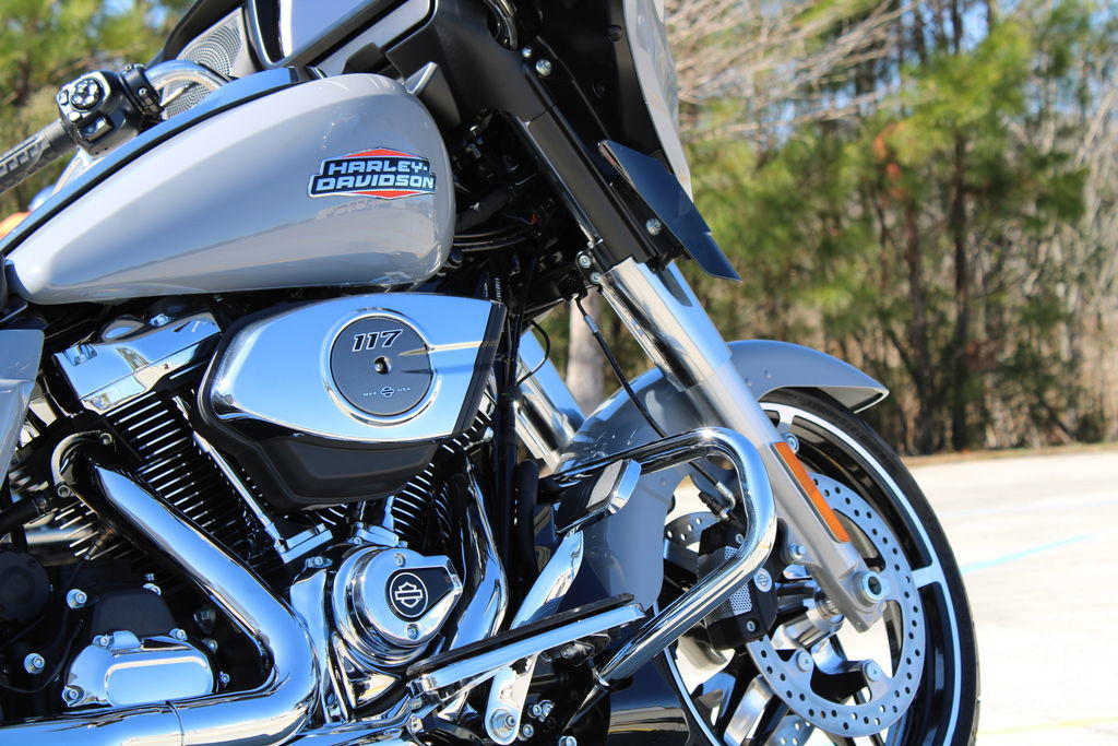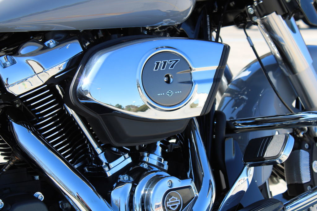 The Milwaukee-Eight 117 delivers 105 hp and 130 ft-lb. of torque, with liquid-cooled heads and a center-mounted radiator to keep both performance and rider comfortable when the temps climb, whether you’re crawling through traffic or chasing sky.