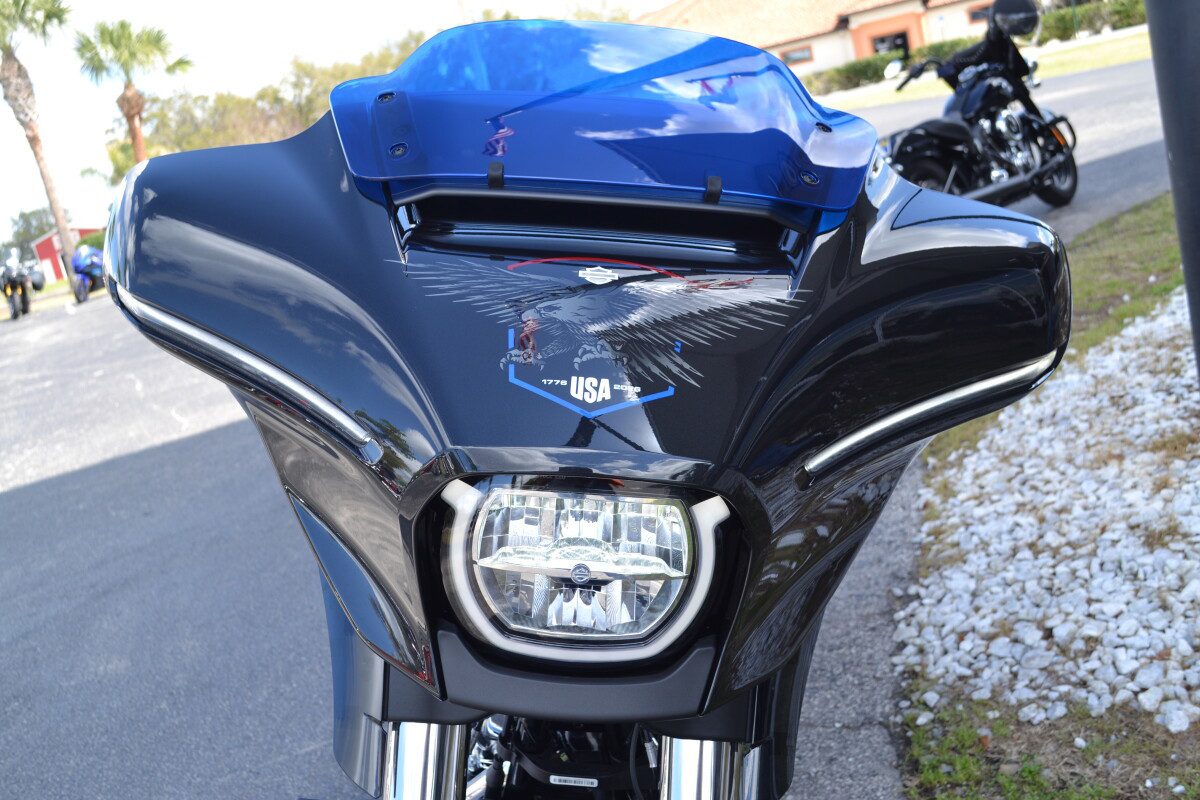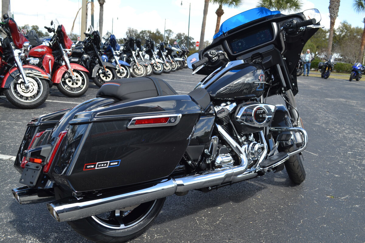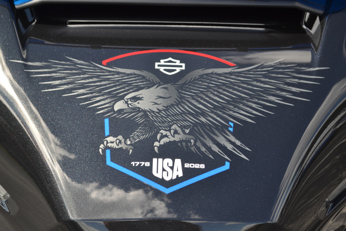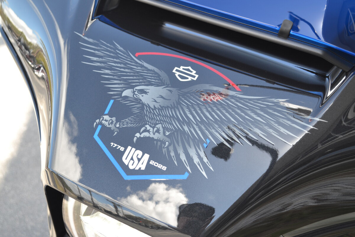 The 2026 Street Glide Liberty Edition carries a story that runs deeper than paint. Midnight Ember sets the tone, but it’s the eagle graphics, drawn from Harley-Davidson’s iconic Bicentennial and Liberty Editions, that root it in history. A blue-tinted windshield, red-white-and-blue seat stitching, and exclusive Liberty badging make this bike instantly recognizable. It’s a rolling salute to 250 years of freedom and the riders who keep that spirit alive.