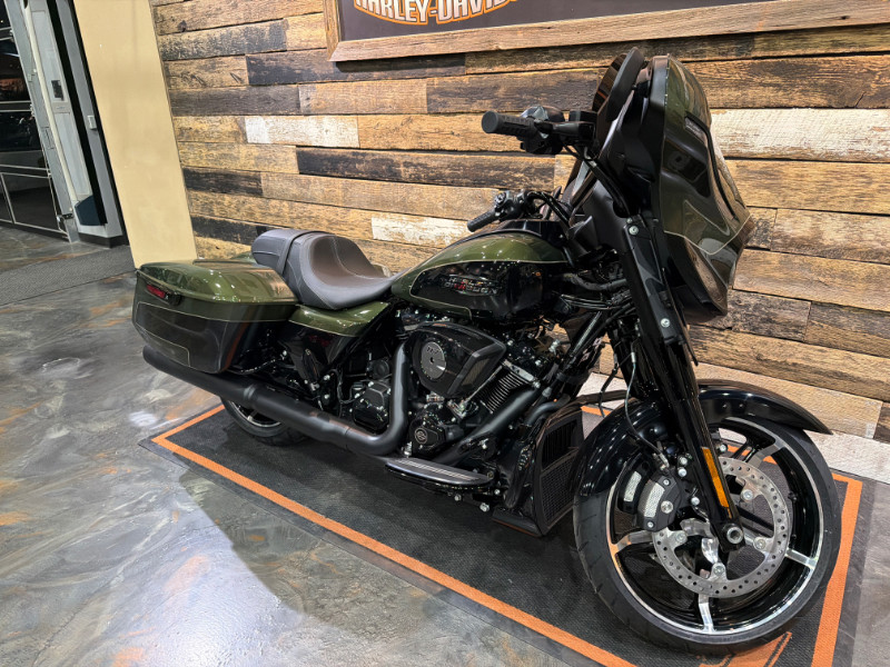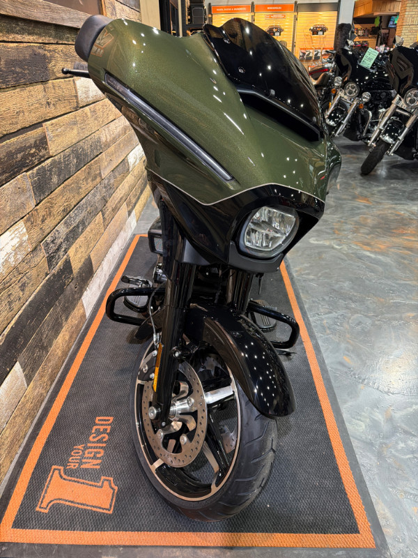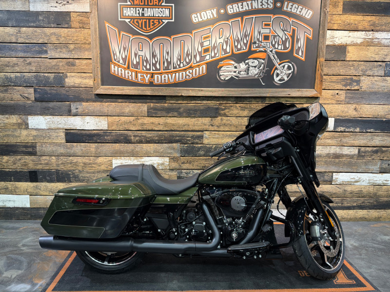 2026 Harley-Davidson Street Glide in Two-Tone Olive Steel Metallic / Vivid Black with Black Finish. This bike comes with the Milwaukee Eight 117 Engine, 6-Speed Transmission, Black Finish, Skyline OS Infotainment, 12.3-Inch TFT Display, Newly Designed Batwing Fairing, Signature LED Lighting, Contrast Cut Wheels, Liquid-Cooled Cylinder Heads, and much more. Vandervest Harley-Davidson of Green Bay. www.vvhd.com