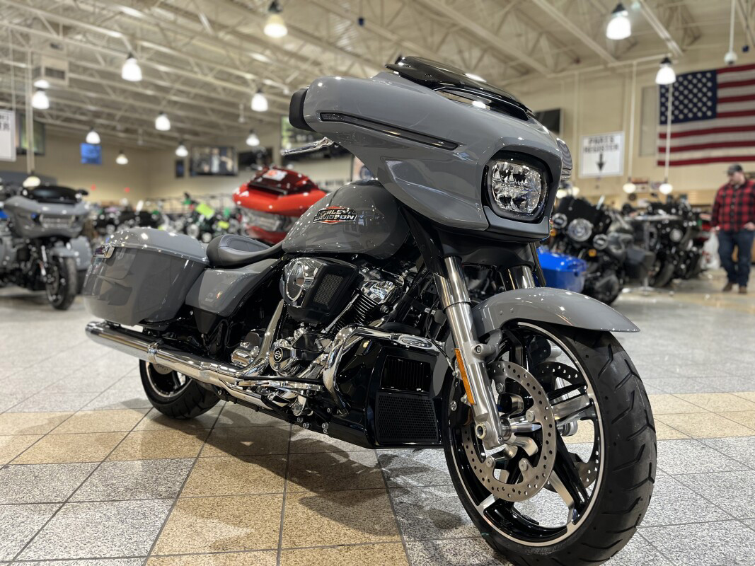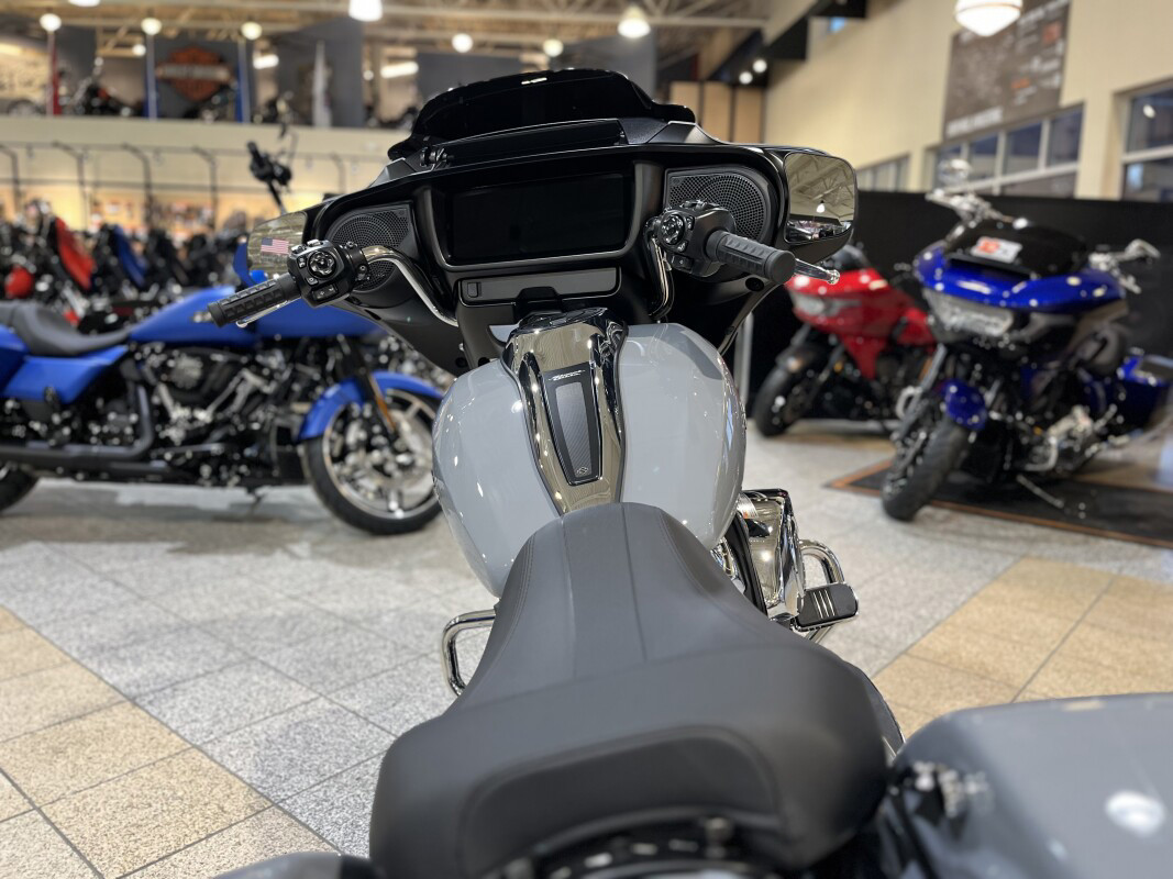 2026 Harley-Davidson Street GlideMake Every Ride the Long Way Home For those who’d rather roam than simply arrive, the 2026 Street Glide delivers the edge of the map on a silver platter. With striking new colorways, a liquid-cooled Milwaukee-Eight 117 motor, ride-tuned rear suspension optimized for long haul comfort, and the 12.3” Skyline OS (312 mm) display keeping you headed in the right direction, every road is a reason to take the long way home. Features may include: The Next Generation of Batwing Fairing Shaped by computational fluid dynamics (CFD) to push clean air around the rider, the Street Glide’s iconic and newly redesigned iconic Batwing fairing cuts down helmet buffeting and makes hours in the saddle feel a whole lot shorter. All-LED Signature Lighting Daytime Running Light headlamp, integrated turn signals, and a slim LED taillight give the Street Glide a modern glow that stands out in traffic and engineered to fit the bike’s clean lines. Milwaukee-Eight 117 That’s All Go The Milwaukee-Eight 117 delivers 105 hp and 130 ft-lb. of torque, with liquid-cooled heads and a center-mounted radiator to keep both performance and rider comfortable when the temps climb, whether you’re crawling through traffic or chasing sky. High-Performance Touring Intak More volume. More airflow. More reason to twist the throttle. The high-performance touring intake feeds the Milwaukee-Eight 117 exactly what it wants. More volume. More airflow. More reason to crack it open. Standard Rider Safety Enhancements Cornering ABS, Cornering Traction Control, and other tech step in when you need them, helping you hold your line even when the road doesn’t. Ride Loud with Premium Sound A 200-watt, 4-channel amp drives in-fairing speakers tuned to cut through wind and engine noise, so your soundtrack rides with you, loud and clear