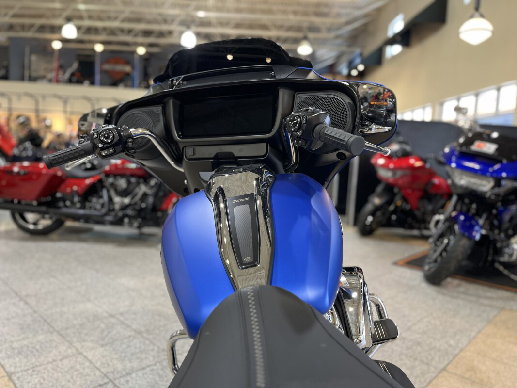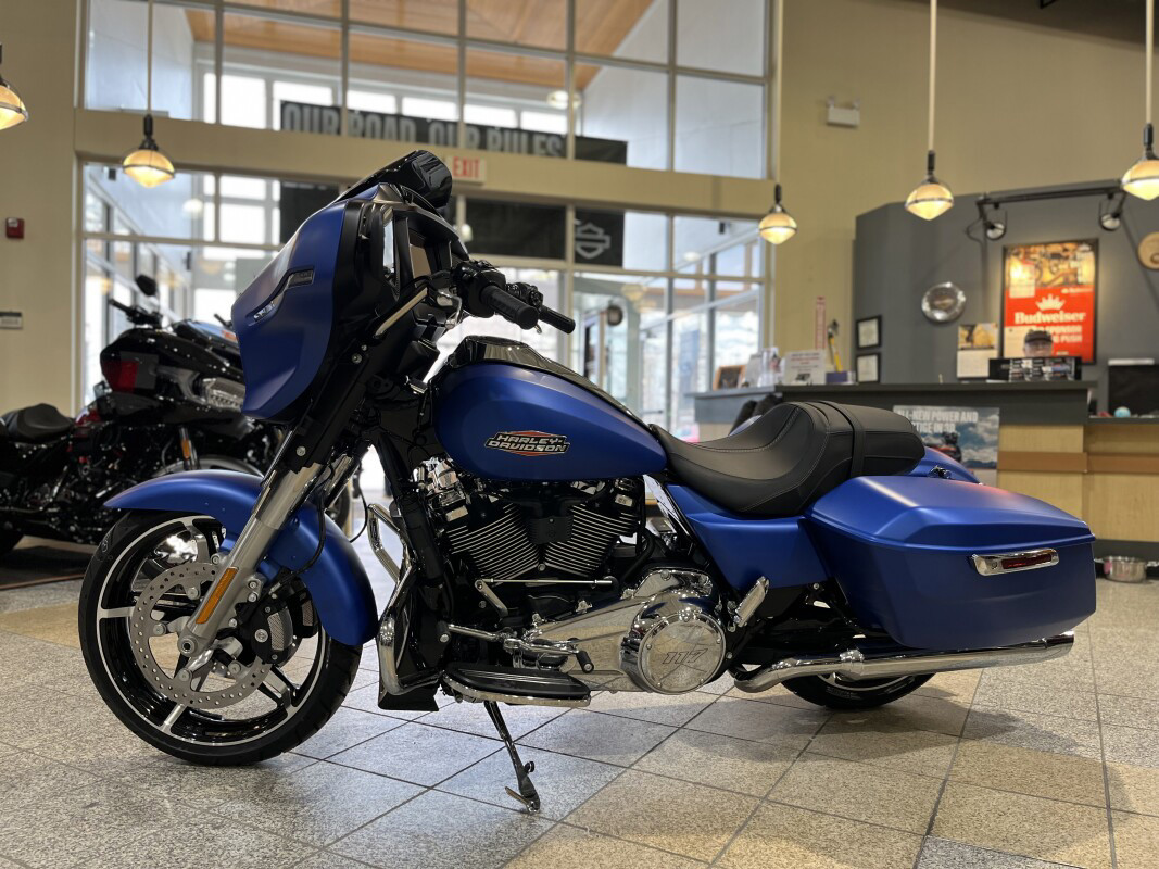2026 Harley-Davidson Street GlideMake Every Ride the Long Way Home For those who’d rather roam than simply arrive, the 2026 Street Glide delivers the edge of the map on a silver platter. With striking new colorways, a liquid-cooled Milwaukee-Eight 117 motor, ride-tuned rear suspension optimized for long haul comfort, and the 12.3” Skyline OS (312 mm) display keeping you headed in the right direction, every road is a reason to take the long way home. Features may include: The Next Generation of Batwing Fairing Shaped by computational fluid dynamics (CFD) to push clean air around the rider, the Street Glide’s iconic and newly redesigned iconic Batwing fairing cuts down helmet buffeting and makes hours in the saddle feel a whole lot shorter. All-LED Signature Lighting Daytime Running Light headlamp, integrated turn signals, and a slim LED taillight give the Street Glide a modern glow that stands out in traffic and engineered to fit the bike’s clean lines. Milwaukee-Eight 117 That’s All Go The Milwaukee-Eight 117 delivers 105 hp and 130 ft-lb. of torque, with liquid-cooled heads and a center-mounted radiator to keep both performance and rider comfortable when the temps climb, whether you’re crawling through traffic or chasing sky. High-Performance Touring Intak More volume. More airflow. More reason to twist the throttle. The high-performance touring intake feeds the Milwaukee-Eight 117 exactly what it wants. More volume. More airflow. More reason to crack it open. Standard Rider Safety Enhancements Cornering ABS, Cornering Traction Control, and other tech step in when you need them, helping you hold your line even when the road doesn’t. Ride Loud with Premium Sound A 200-watt, 4-channel amp drives in-fairing speakers tuned to cut through wind and engine noise, so your soundtrack rides with you, loud and clear
