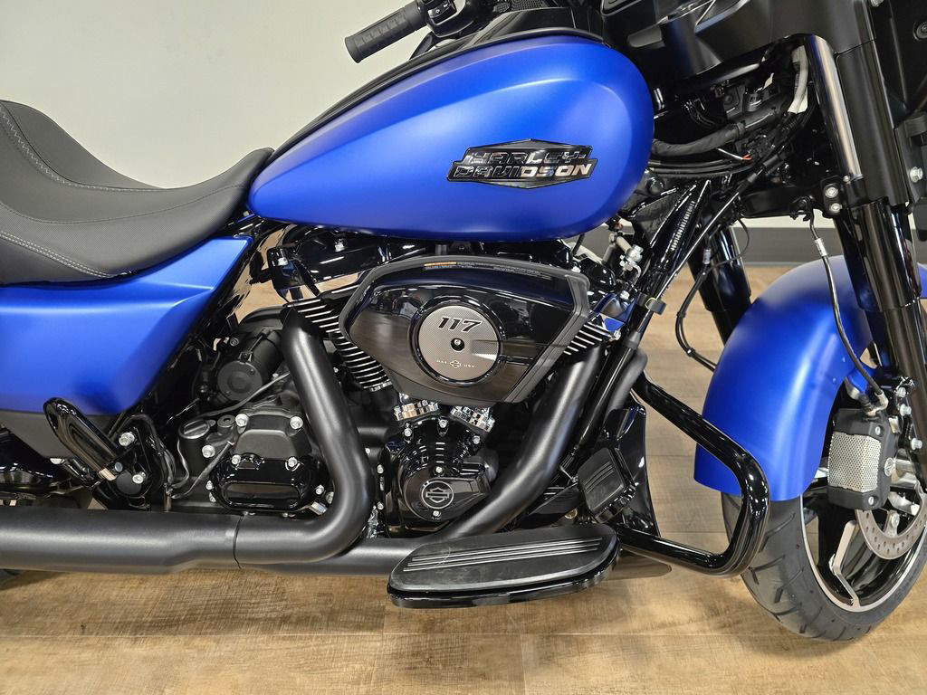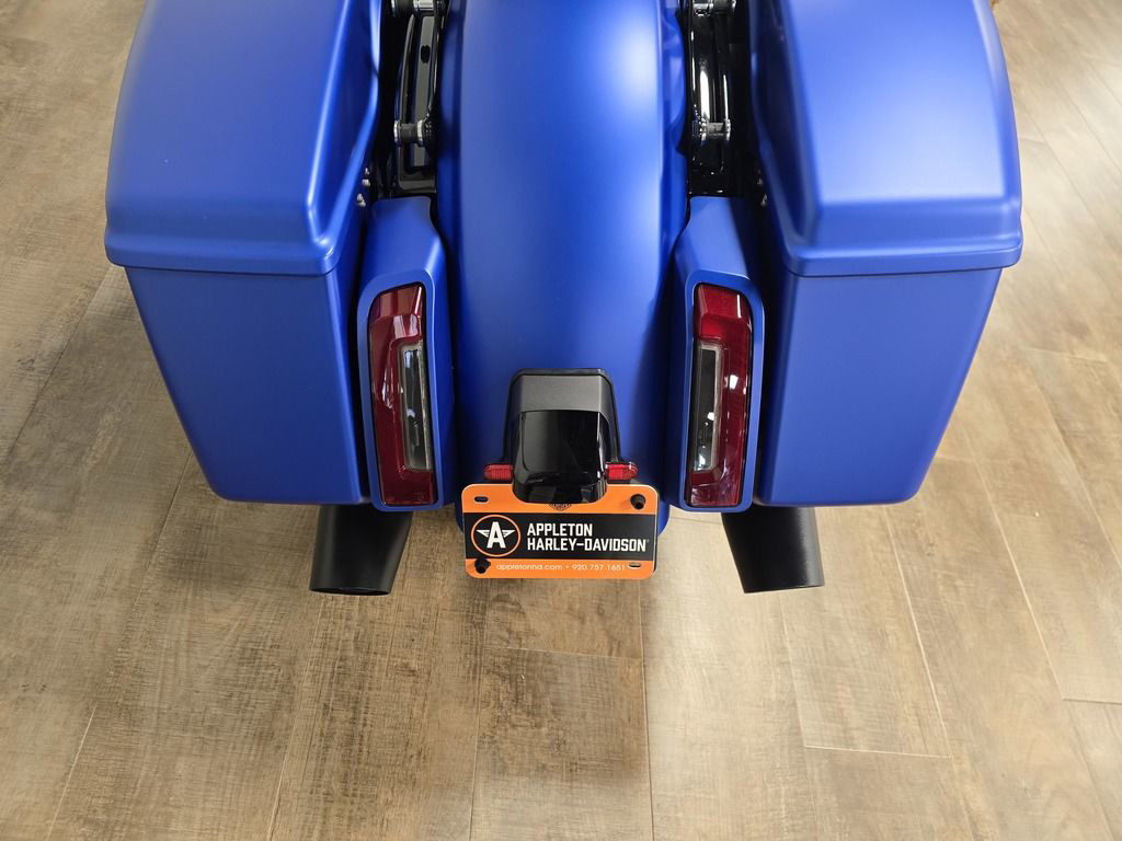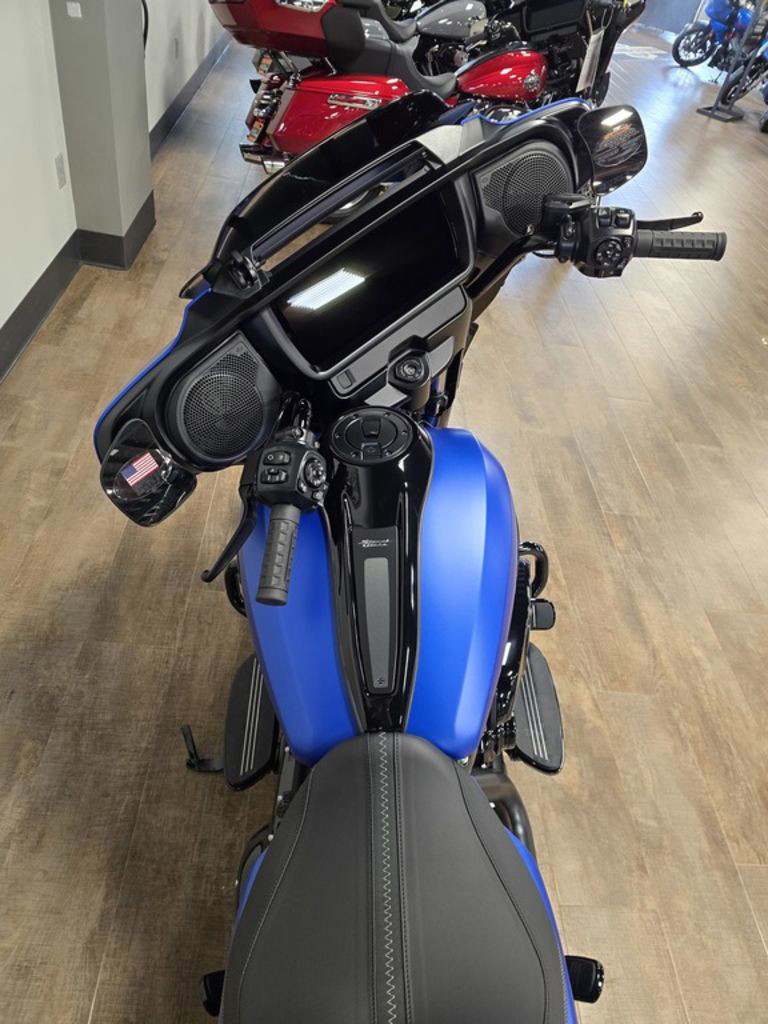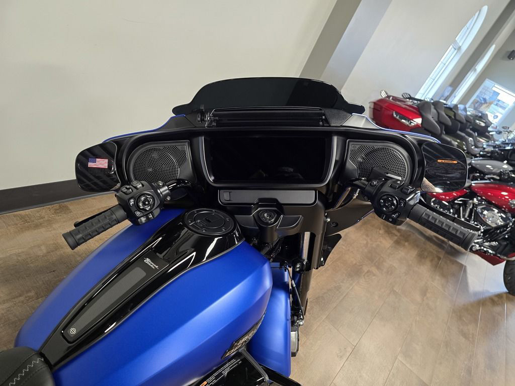 The Milwaukee-Eight 117 delivers 105 hp and 130 ft-lb. of torque, with liquid-cooled heads and a center-mounted radiator to keep both performance and rider comfortable when the temps climb, whether you’re crawling through traffic or chasing sky.
