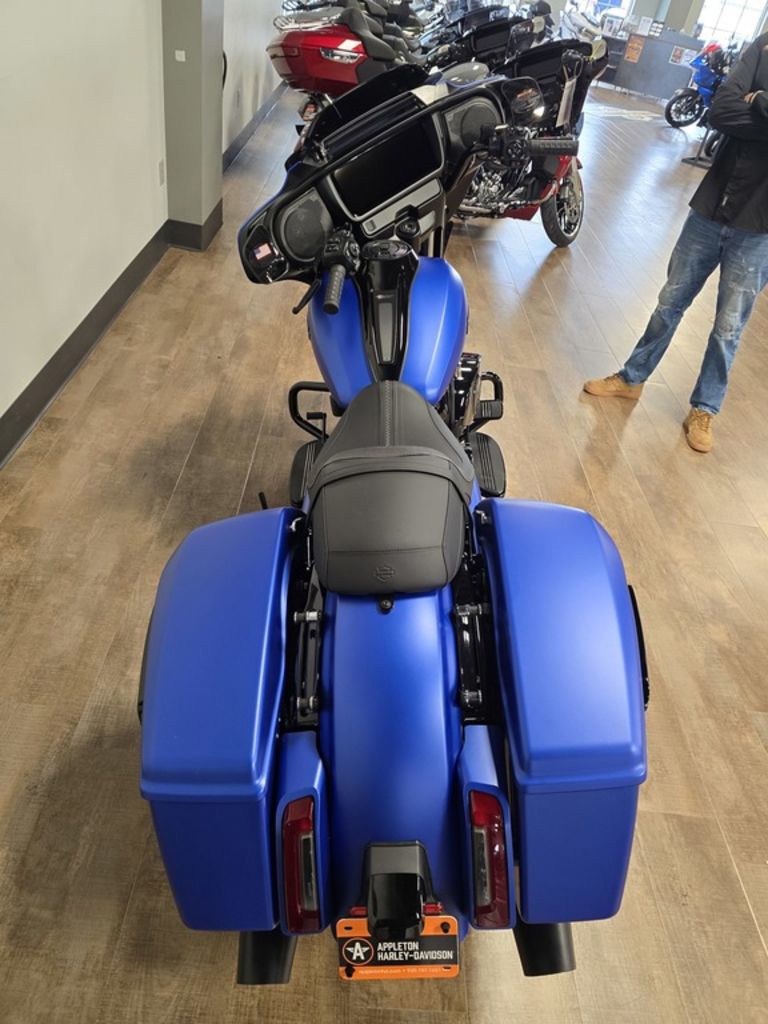 Daytime Running Light headlamp, integrated turn signals, and a slim LED taillight give the Street Glide a modern glow that stands out in traffic and engineered to fit the bike’s clean lines.
