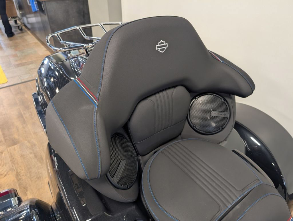 Built for the long haul, the new Grand Tour-Pak and trunk assembly provide abundant storage with unmatched Harley-Davidson style. Integrated LED lighting, premium lining, passenger speaker pods and a new luggage rack blend practicality with polish, keeping gear organized and the overall profile in perfect rhythm with the fairing.