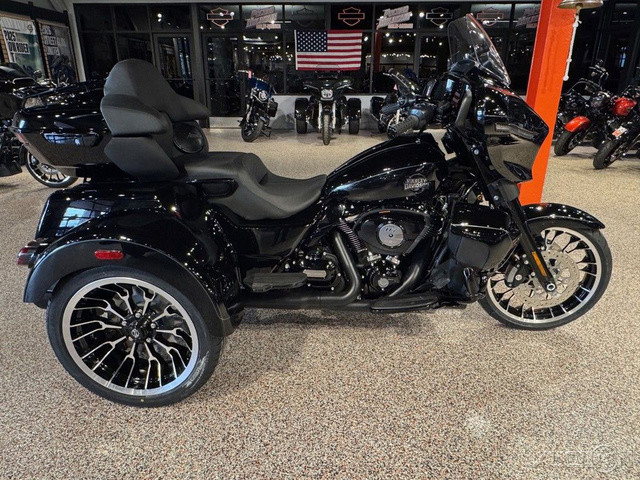 2026 Harley-Davidson® Street Glide® 3 LimitedKickstand Not Included.The new 2026 Street Glide 3 Limited doesn’t echo the past. I nstead, it creates its own language of long-haul touring. With the newly redesigned Batwing fairing, completely re-engineered suspension, and Milwaukee-Eight® VVT 117 powe r, every mile feels sharper, more comfortable, and more your own. Add in heated rider and passenger seating, the all-new Grand Tour-Pak® with all the storage you could need, and the Skyline™ OS keeping you connected, and this trike makes the longest rides feel like a rip around the block. Three wheels don’t just change the ride. They change what’s possible.Features may include:Confidence That Goes the DistanceThe Street Glide 3 Limited blends new long-haul comfort upgrades with iconic Harley-Davidson style. Aerodynamics, storage, and rider technology come together with refined chassis tuning and Milwaukee-Eight VVT 121 power to keep you confident, connected, and ready to stack miles on miles, and smiles on smiles.Redesigned Batwing Fairing + Rear BodyworkThe newly redesigned Batwing fairing leads a sweep of new bodywork for 2026, including subtly re-sculpted rear fenders that complement the trike’s wider stance. Improved airflow, modern LED lighting integration, and refined form bring, comfort, and a look that could only come from Harley-Davidson.NEW Grand Tour-Pak with Speaker PodsBuilt for the long haul, the new Grand Tour-Pak and trunk assembly provide abundant storage with unmatched Harley-Davidson style. Integrated LED lighting, premium lining, passenger speaker pods and a new luggage rack blend practicality with polish, keeping gear organized and the overall profile in perfect rhythm with the fairing.Mid-Frame + Vented Fairing LowersDesigned to make the long miles feel easier, new mid-frame and vented fairing lowers manage heat and airflow for a cool, more composed ride. Comfort and control come standard, even when the temps start to climb.NEW Comfort Heated Rider + Passenger SeatsAll-season comfort, dialed in through a completely redesigned rider and passenger seat . On-seat controls let rider and passenger fine-tune heat quickly, while heated grips keep hands warm and responsive through cold-weather miles. Comfort that keeps muscles loose and spirits high through chilly starts, late finishes, and changing elevations. The kind that supports days measured in states, not towns.NEW Cast Aluminum WheelsLightweight and premium in finish, the new cast aluminum wheels sharpen the stance and complement the trike’s sculpted lines, delivering confident handling when the road stretches on and surfaces change beneath you.Highway Pegs + Heel ShifterStretch out, settle in, and shift smooth. Highway pegs open up your riding position on the open road, while a heel-toe shifter adds ease to every gear change. Together, they bring long-haul ergonomics that keep you comfortable and in rhythm with the miles ahead.