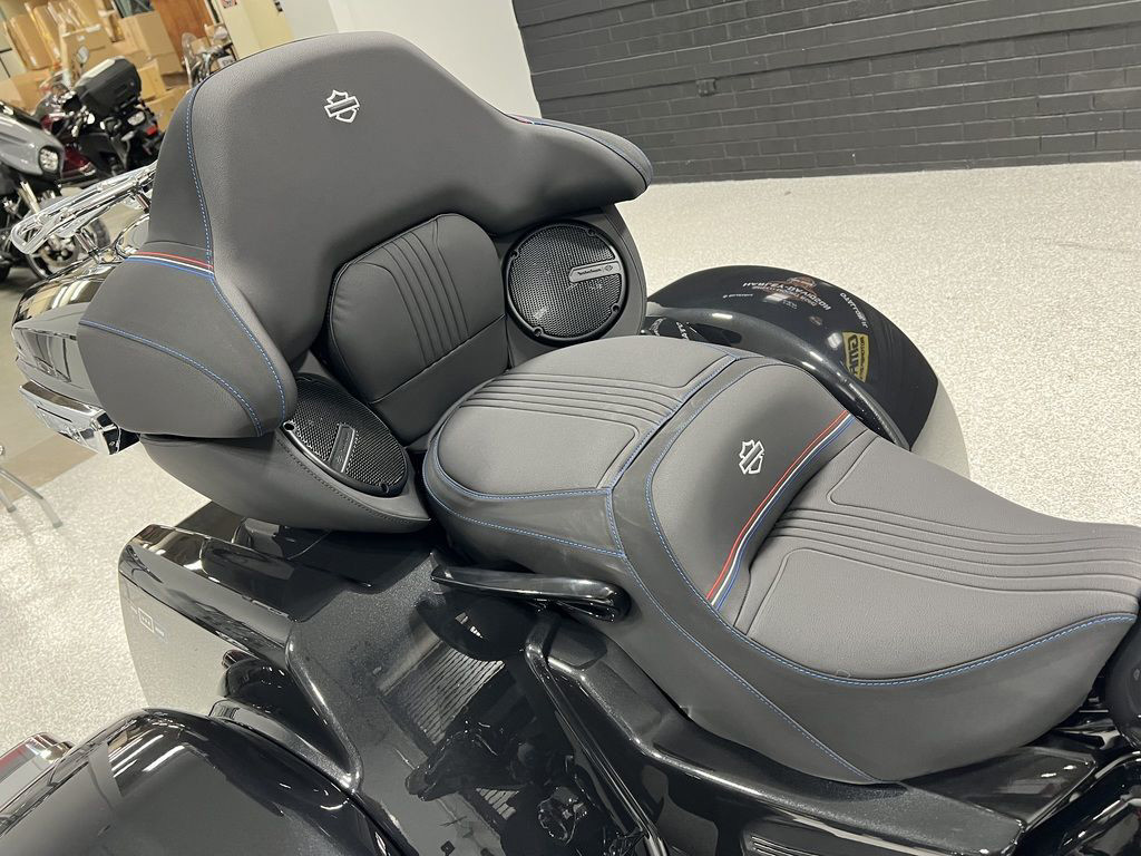 Built for the long haul, the new Grand Tour-Pak and trunk assembly provide abundant storage with unmatched Harley-Davidson style. Integrated LED lighting, premium lining, passenger speaker pods and a new luggage rack blend practicality with polish, keeping gear organized and the overall profile in perfect rhythm with the fairing.