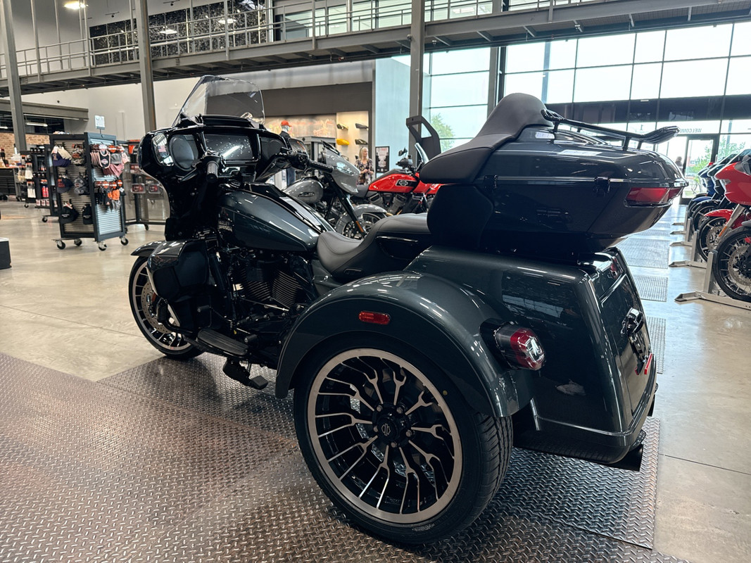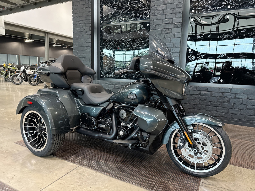 Adorned in the Iron Horse Metallic with Pinstripe color, this trike offers a striking and distinctive appearance. The sleek yet bold design captures the essence of the Harley-Davidson heritage, promising a visually stunning ride that turns heads wherever it goes.