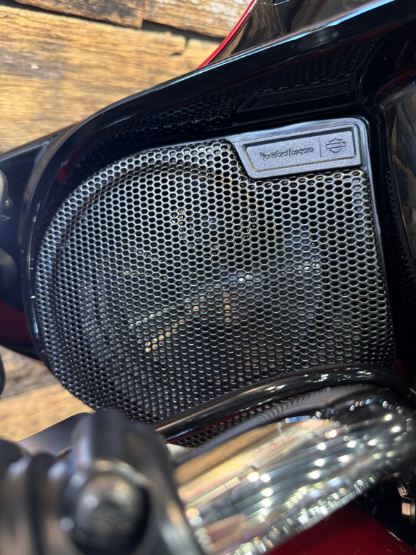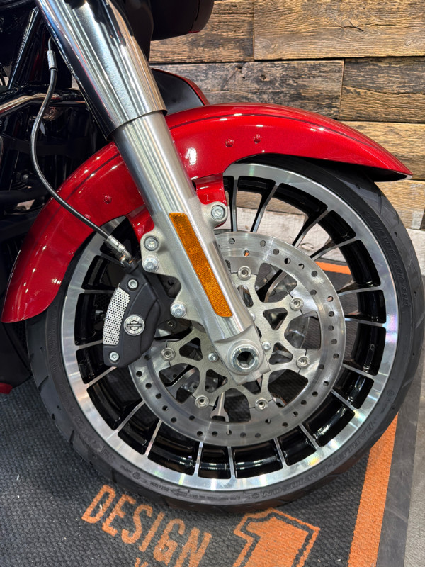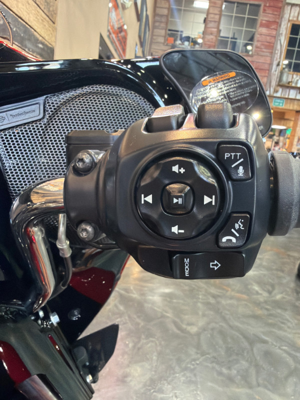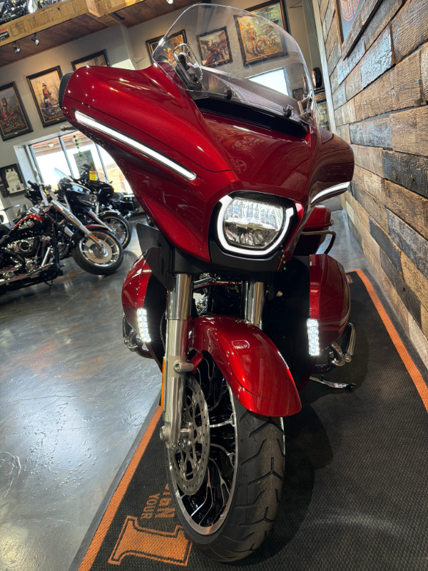 This bike comes with the Milwaukee-Eight 117 Engine, 6-Speed Transmission, Chrome Trim, New Grand Tour Pak, Heated Rider and Passenger Seat, Skyline OS, Premium Rockford Fosgate Audio, New Wheel Design, and more.