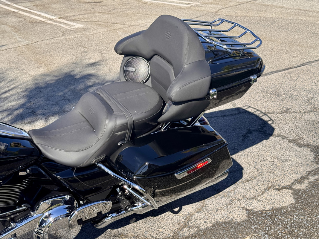 Finished in Vivid Black, it features the classic Harley look with the Batwing fairing and full touring setup.