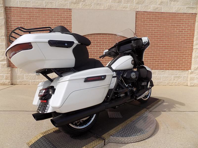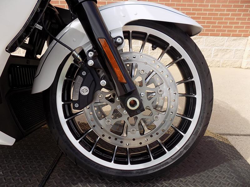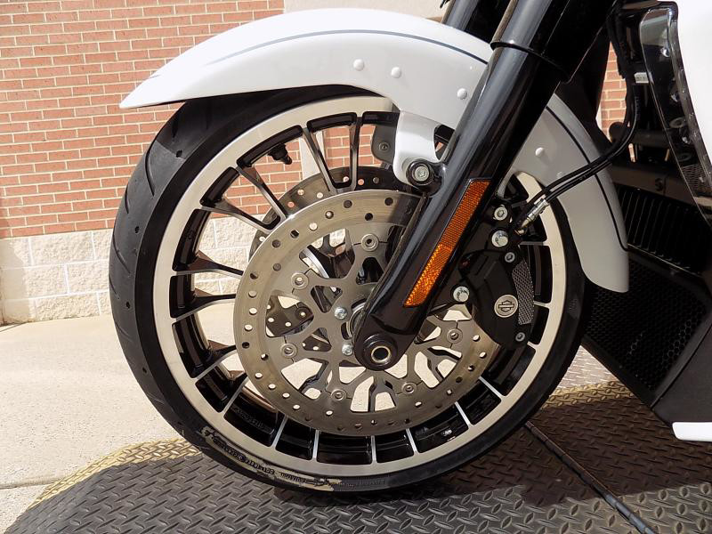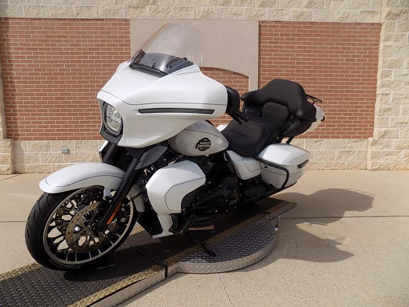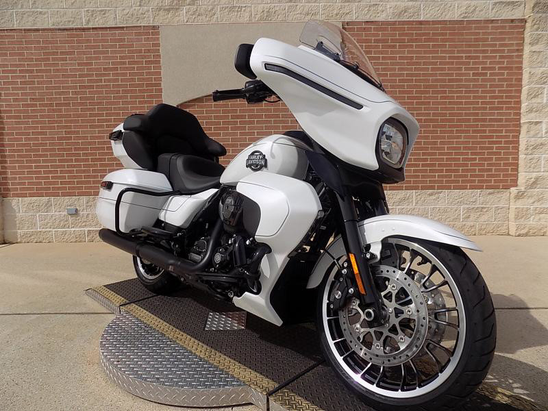 The new Harley-Davidson Street Glide Limited comes dressed in a stunning White Onyx Pearl with a sleek pinstripe, ensuring heads turn wherever you ride. This impeccable hue adds a touch of elegance to the bike's robust profile, combining class with the raw power of a Harley-Davidson.