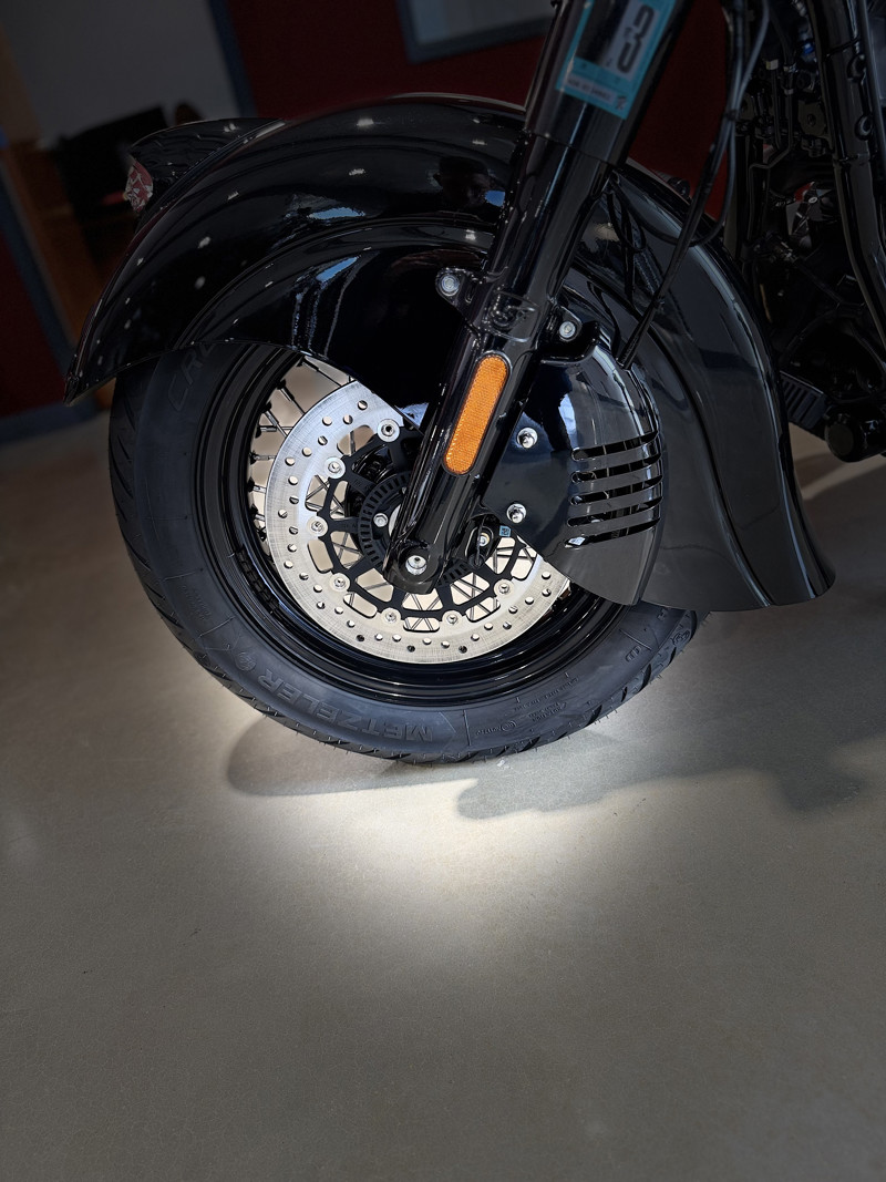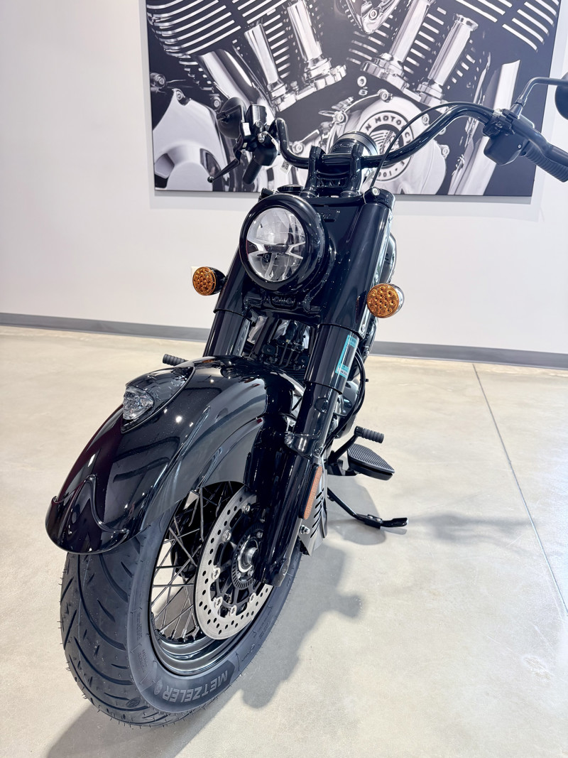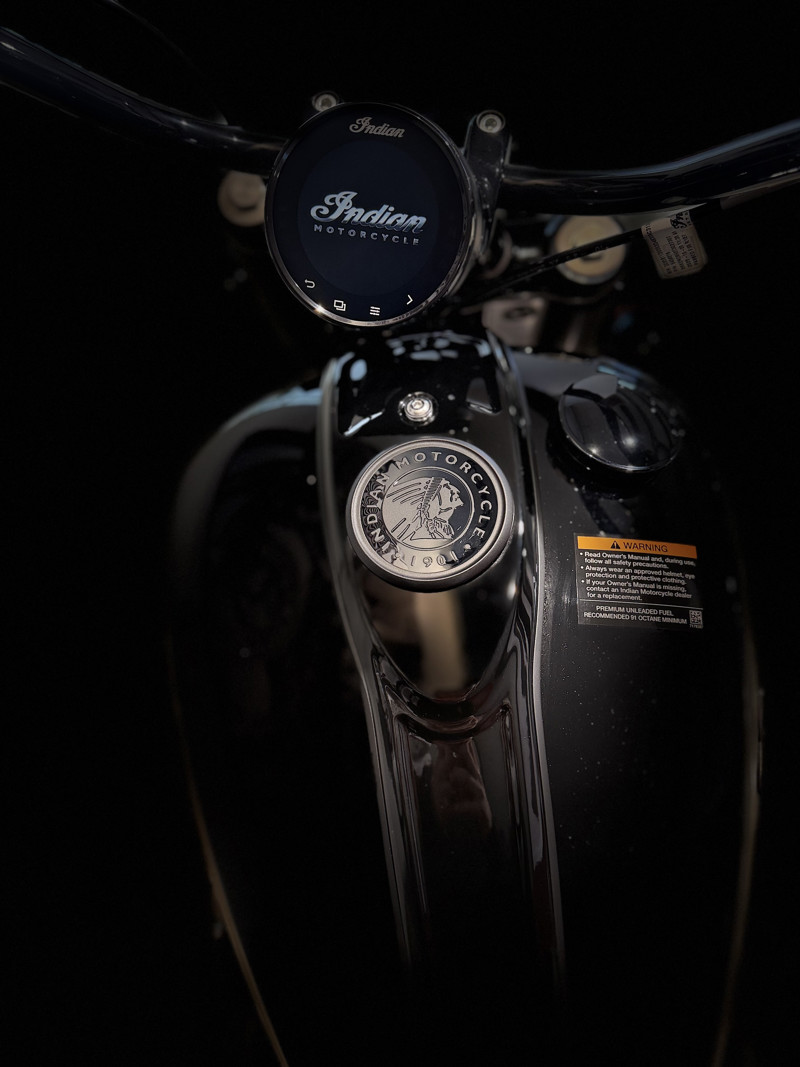 A heritage inspired cruiser with valanced fenders and an iconic lit headdress, silver engine finishes, vintage floating seat and handlebars.