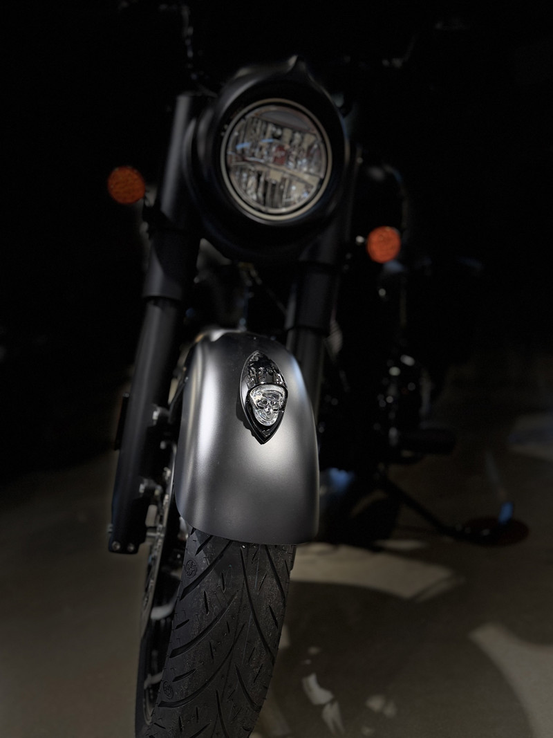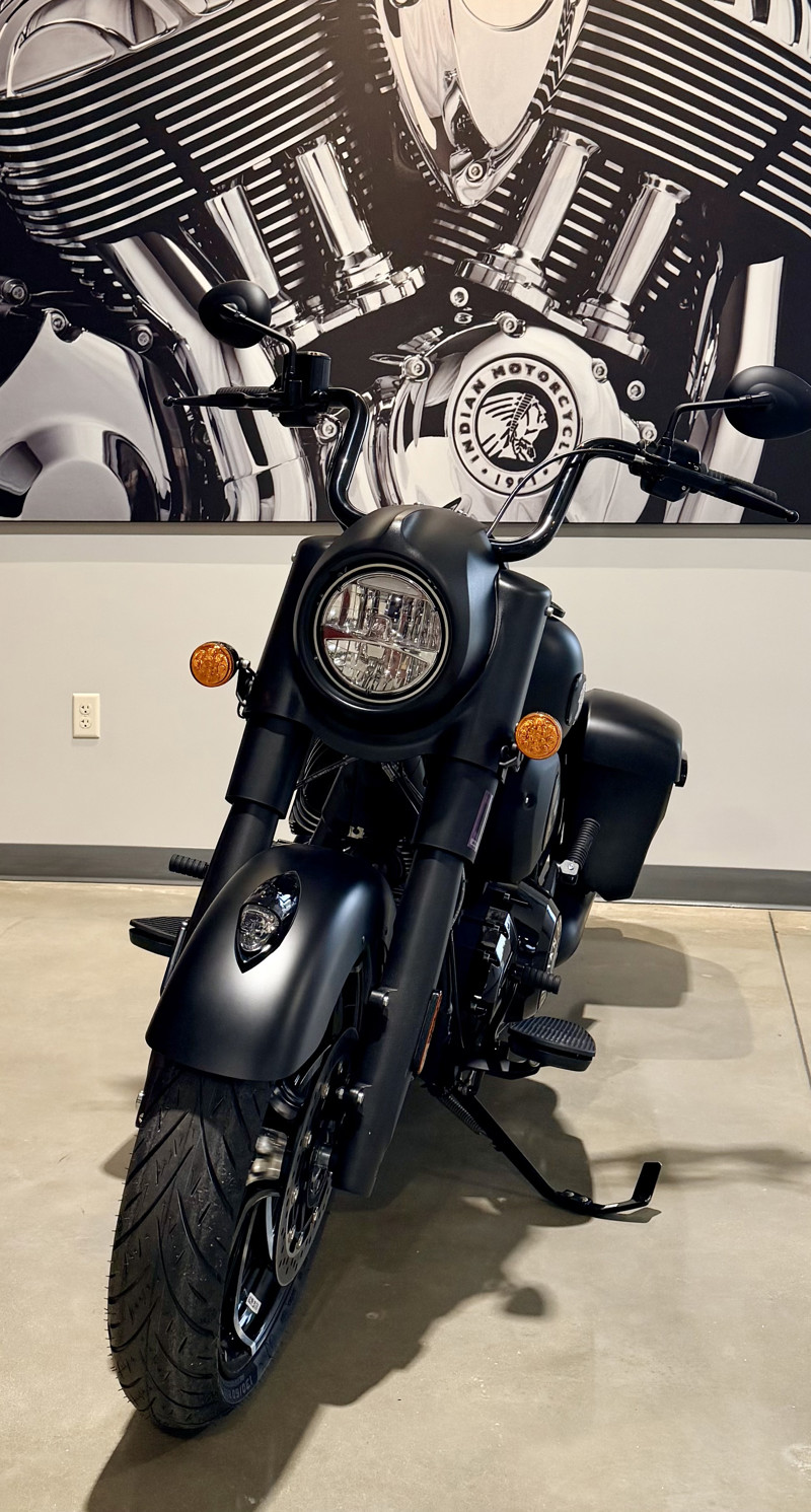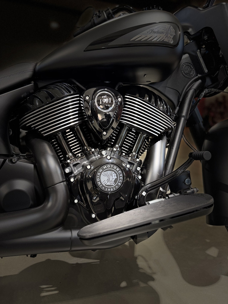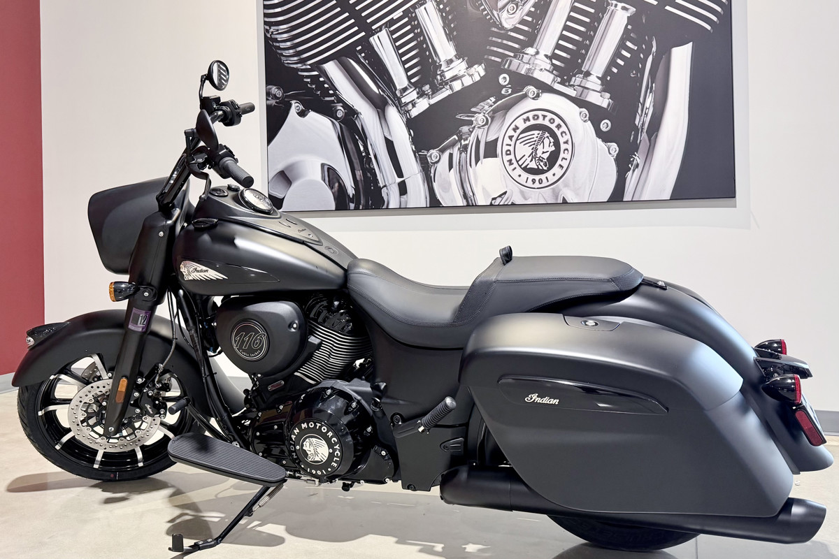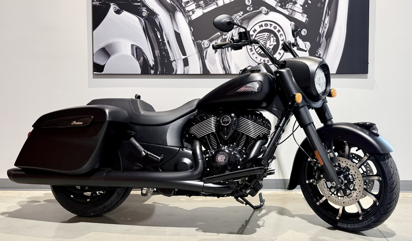 Inspired by the look of custom bikes, the Indian Springfield Dark Horse keeps your fists in the wind and eyes on you.