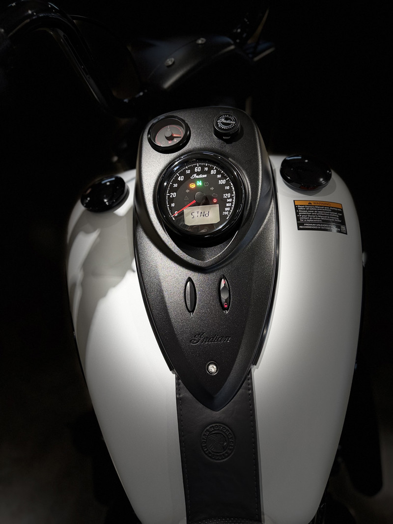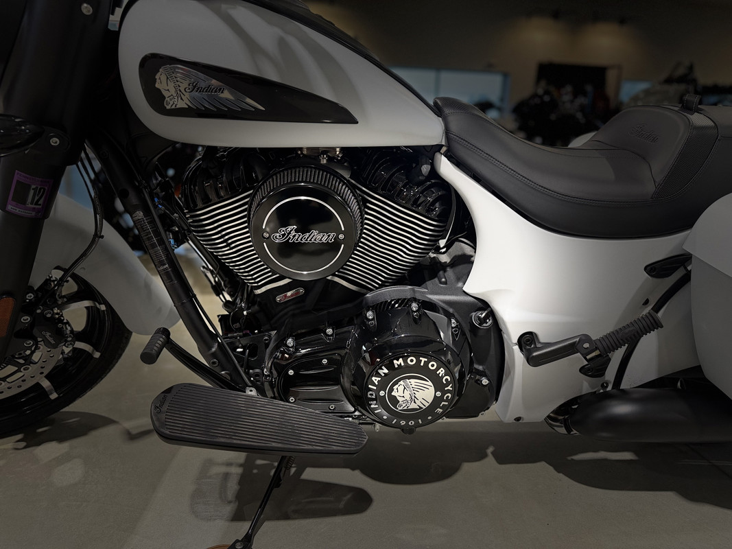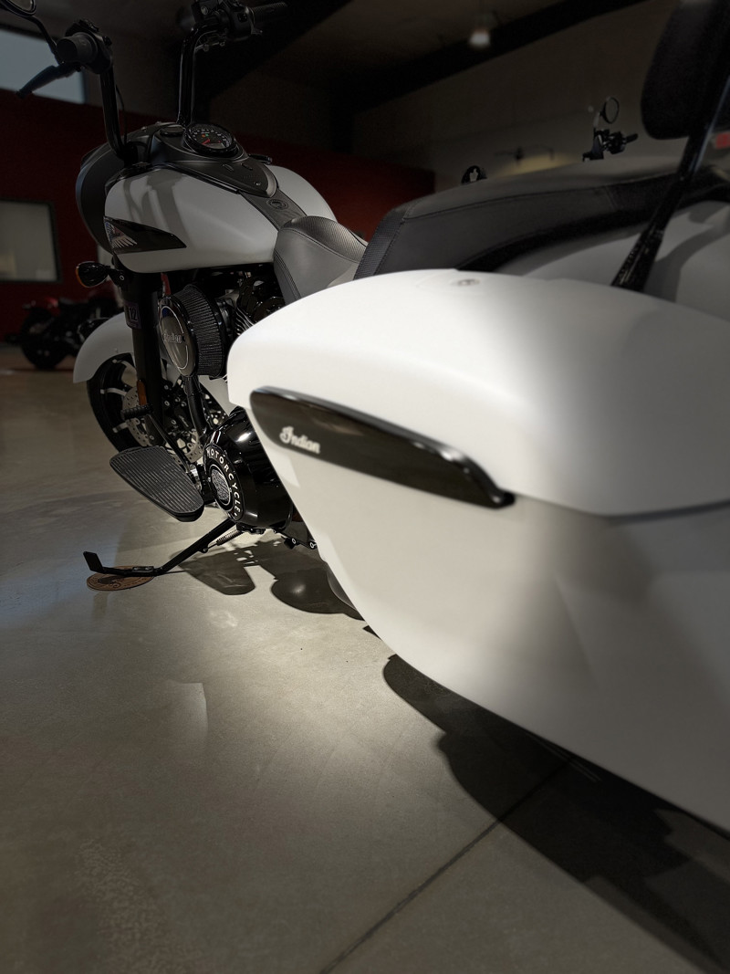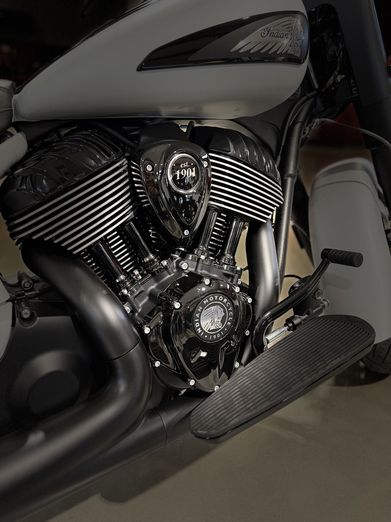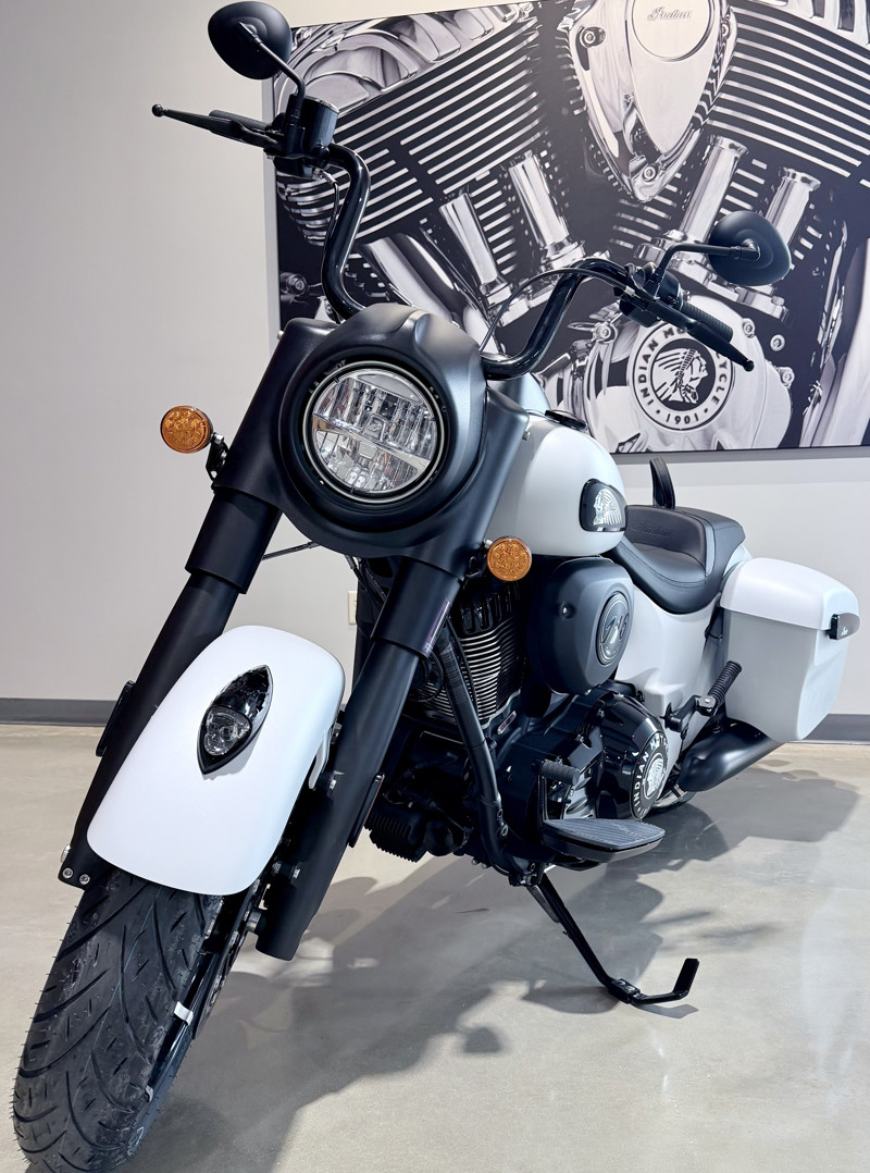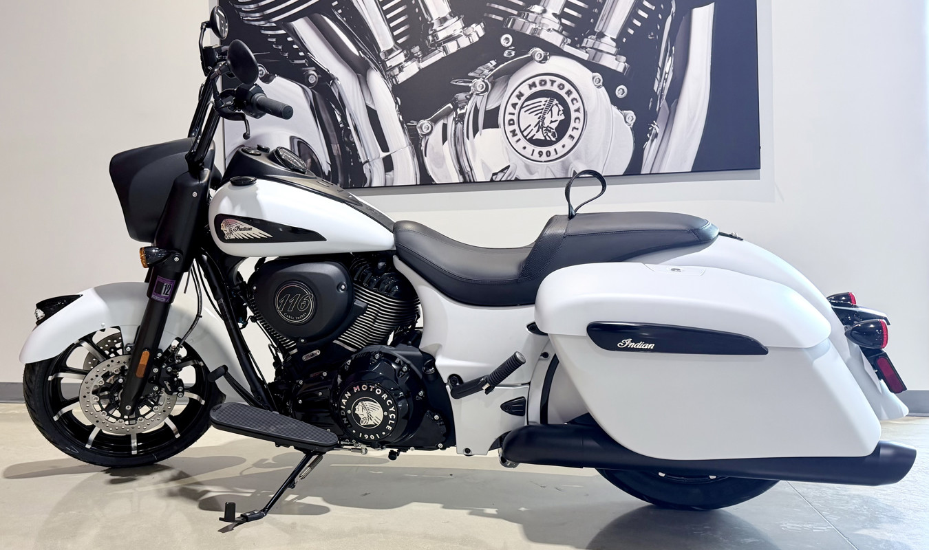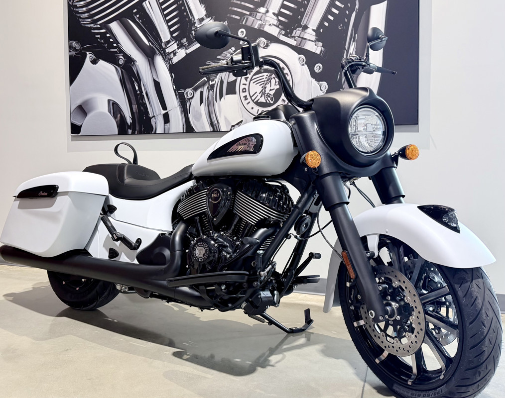 Inspired by the look of custom bikes, the Indian Springfield Dark Horse keeps your fists in the wind and eyes on you.